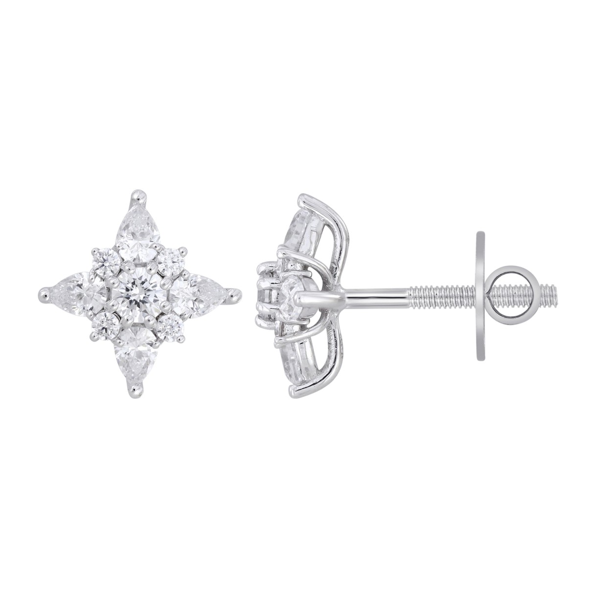 Home Earrings 14K WHITE GOLD 1CT ROUND/PEAR DIAMOND LADIES EARRINGS
