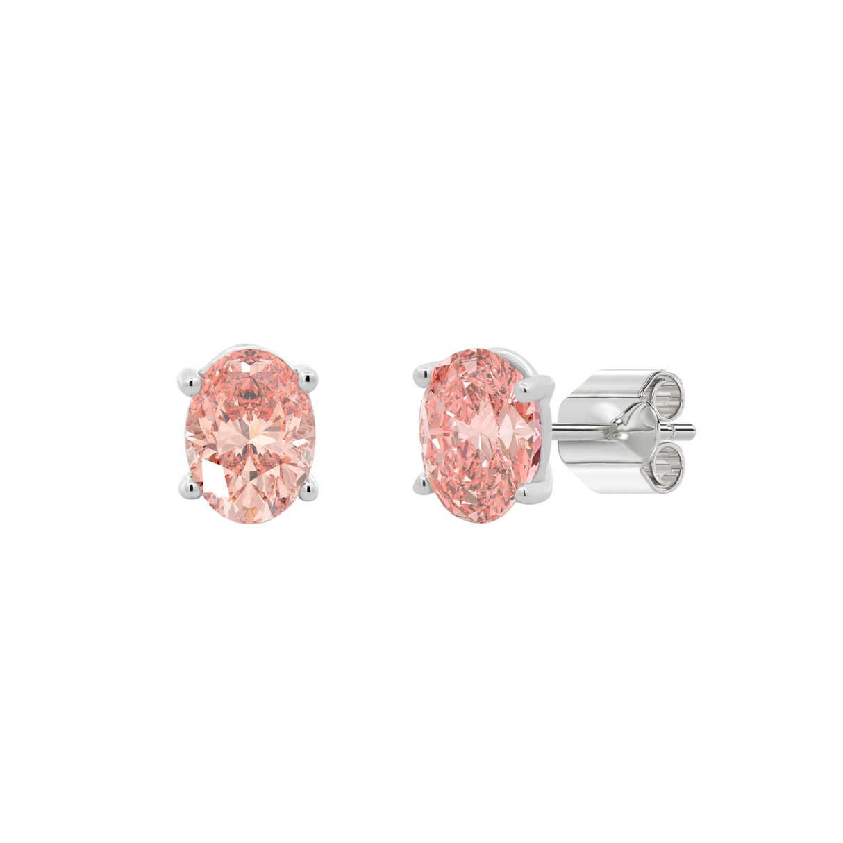 14K WHITE GOLD 2.00CT OVAL PINK DIAMOND LADIES EARRINGS