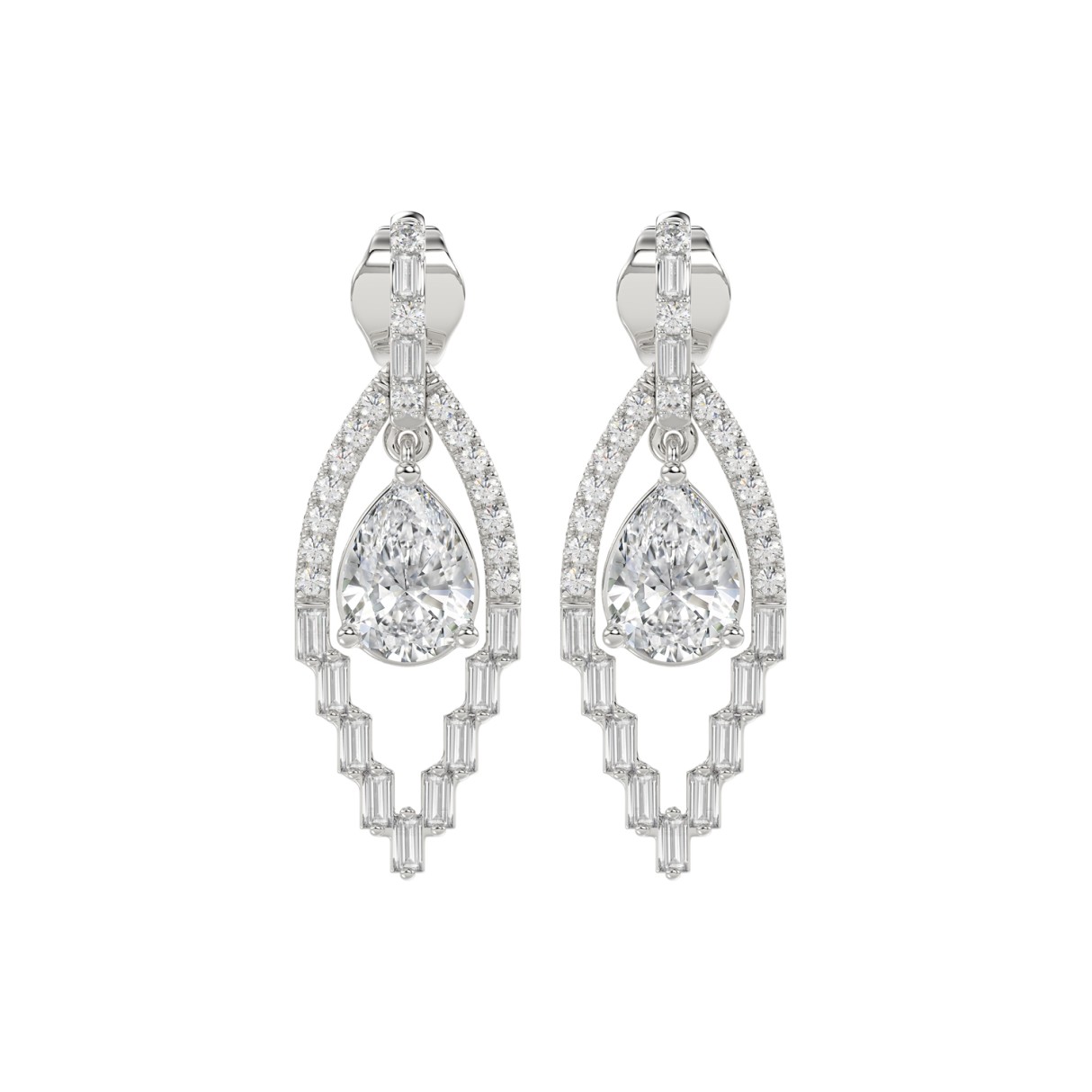 14K WHITE GOLD 2.00CT ROUND/BAGUETTE/PEAR DIAMOND LADIES EARRINGS