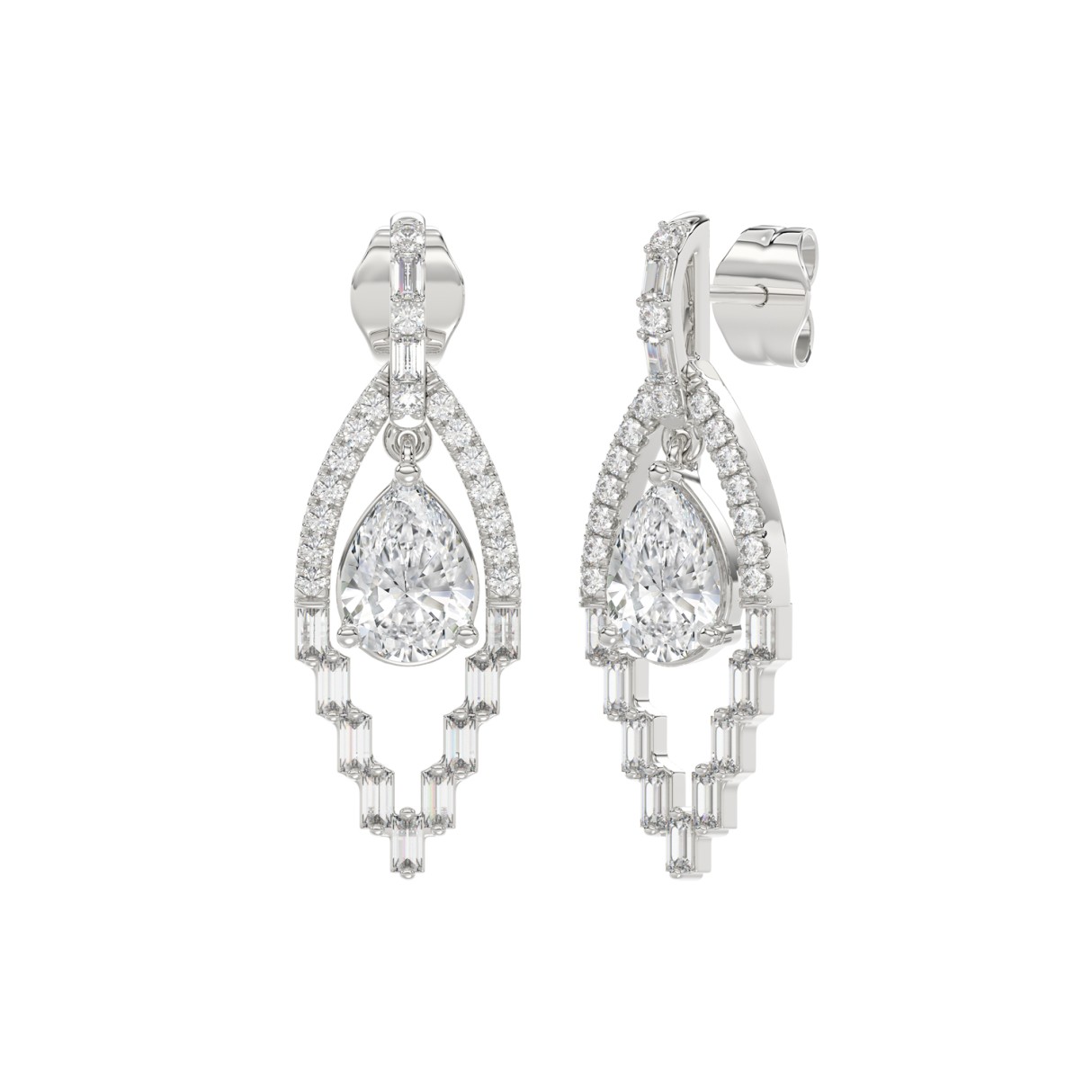 14K WHITE GOLD 2.00CT ROUND/BAGUETTE/PEAR DIAMOND LADIES EARRINGS