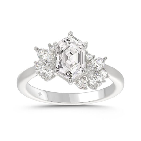 14K WHITE GOLD 2.00CT ROUND/PEAR/MARQUISE/LONG HEXAGON STEP CUT LADIES RING