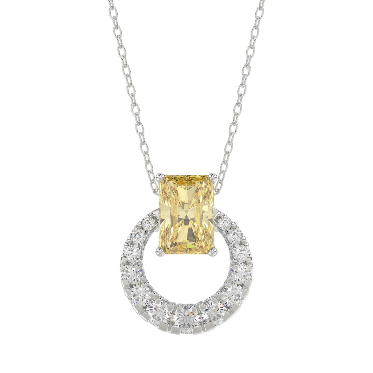 14K WHITE GOLD 2.00CT ROUND/RADIANT DIAMOND LADIES PENDANT WITH CHAIN