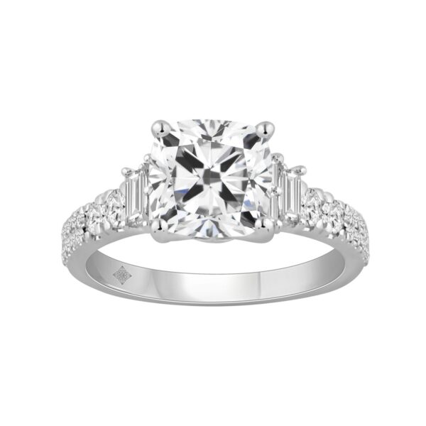 Home Rings 14K WHITE GOLD 2 1/2CT ROUND/CUSHION/BAGUETTE DIAMOND LADIES RING (CENTER STONE CUSHION DIAMOND 2CT)