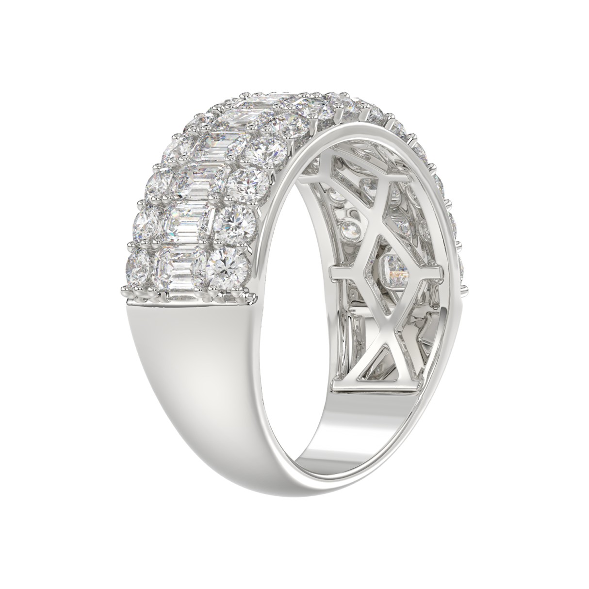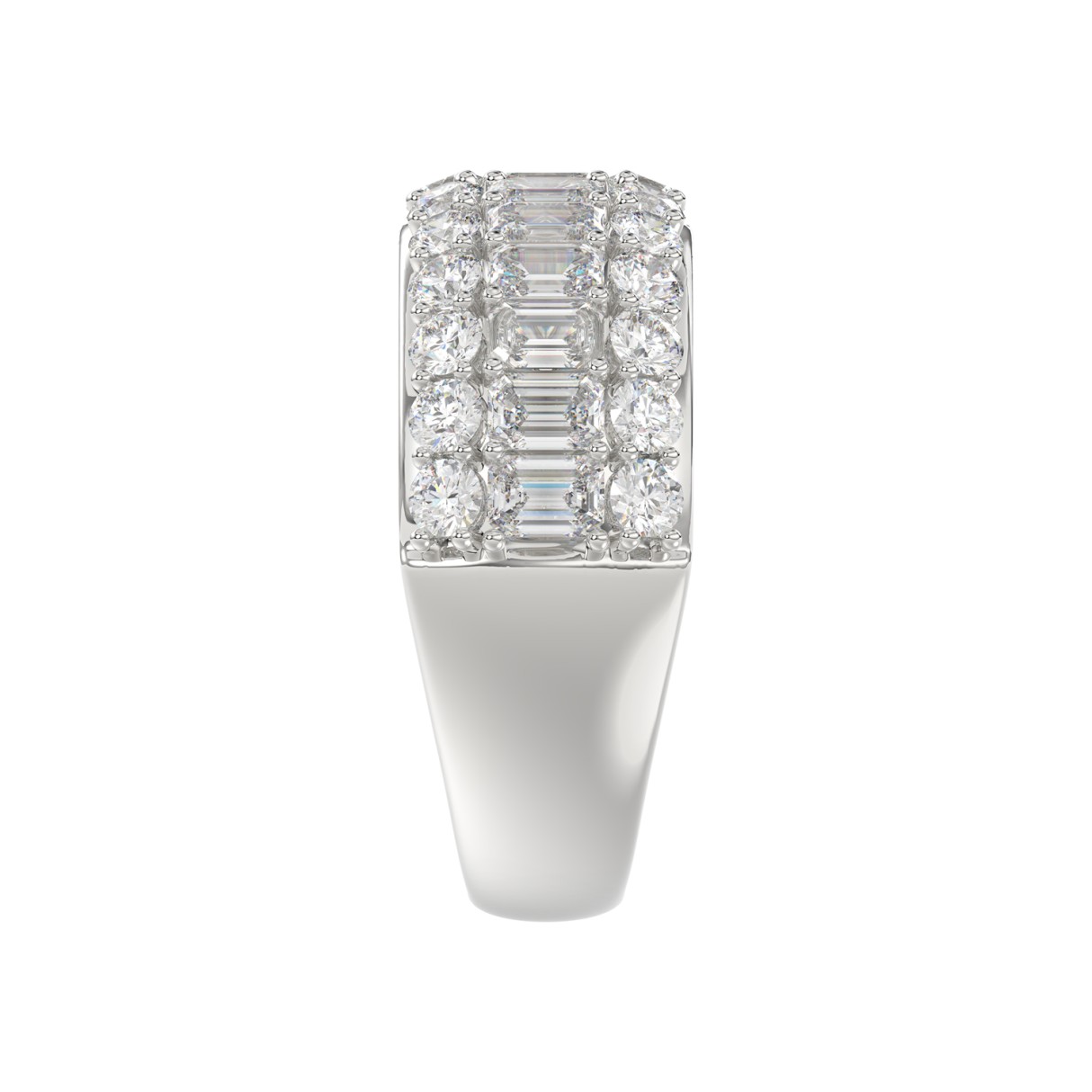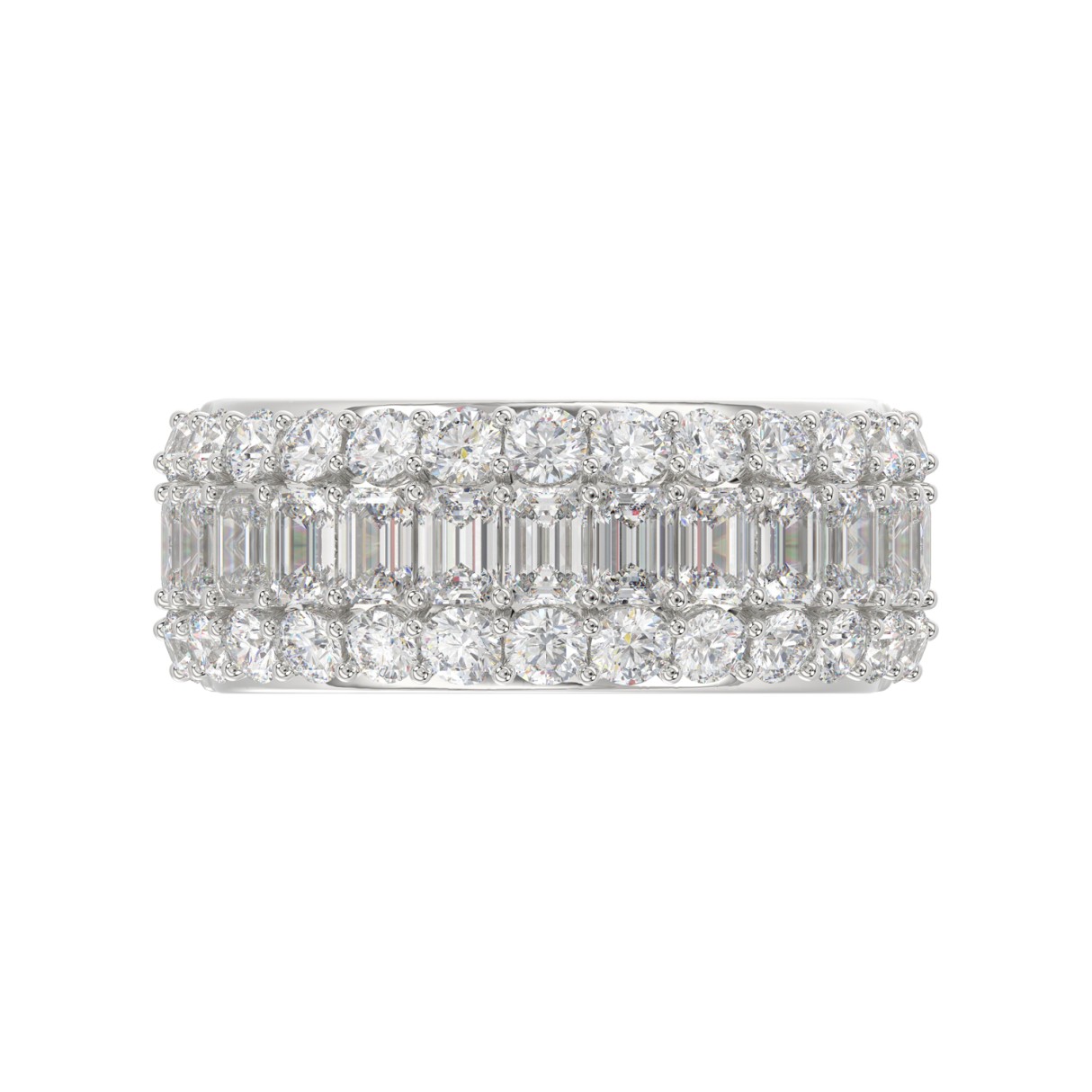 14K WHITE GOLD 2 1/2CT ROUND/EMERALD DIAMOND LADIES BAND