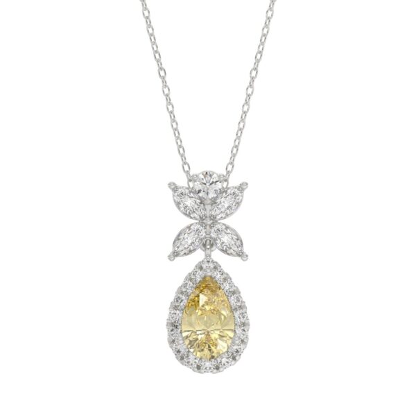 14K WHITE GOLD 2 1/2CT ROUND/MARQUISE/YELLOW PEAR DIAMOND LADIES PENDANT WITH CHAIN