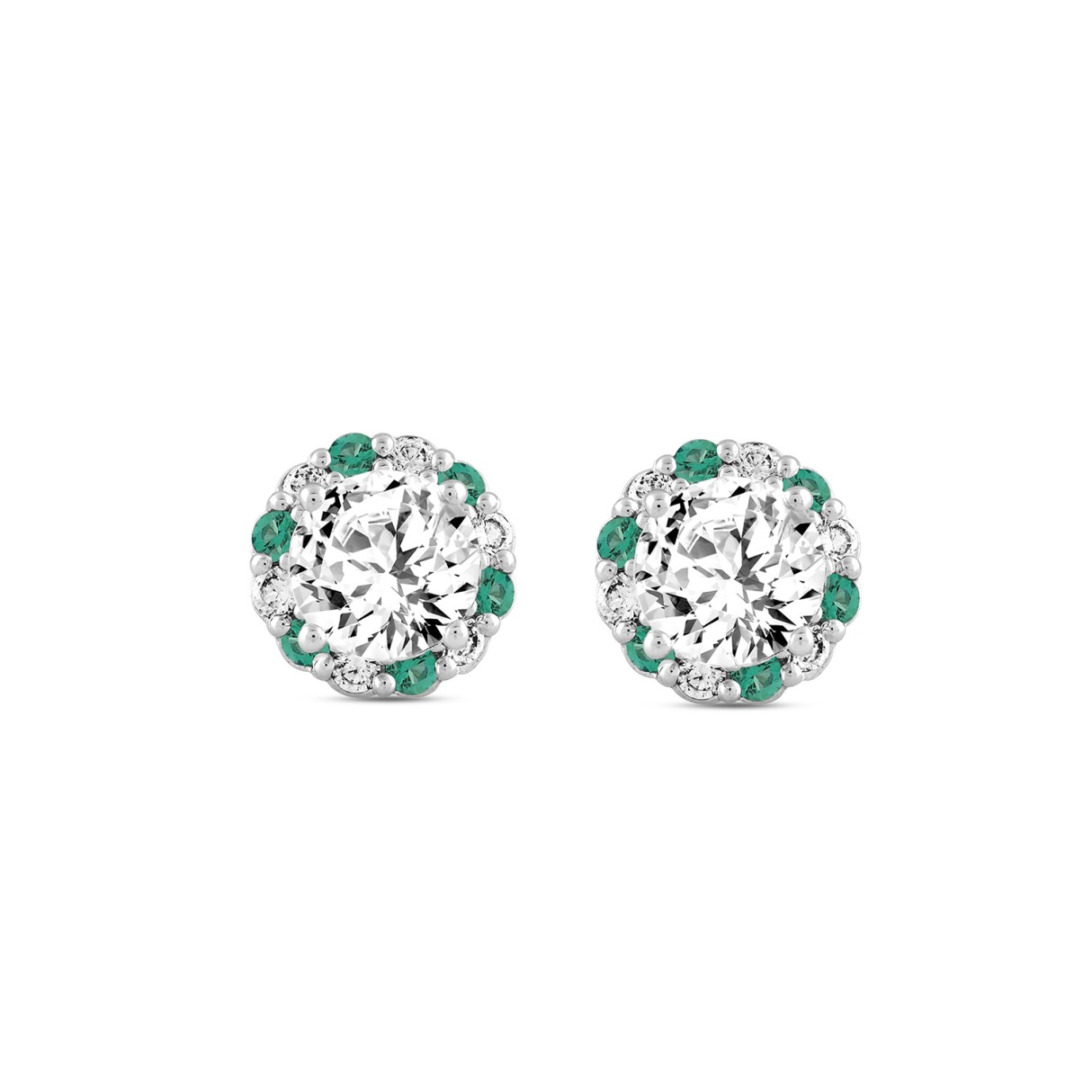 14K WHITE GOLD 2 1/2CT ROUND/ROUND GREEN DIAMOND LADIES EARRING (CENTER STONE ROUND DIAMOND 2CT)