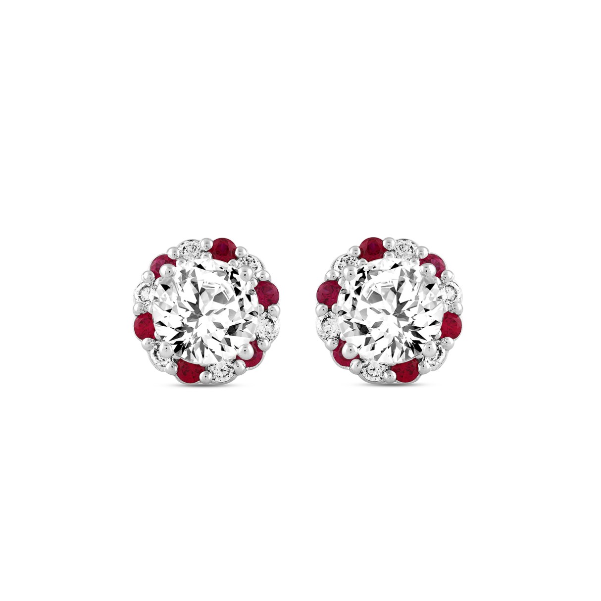 14K WHITE GOLD 2 1/2CT ROUND/RUBY DIAMOND LADIES EARRINGS (CENTER STONE ROUND DIAMOND 2CT)
