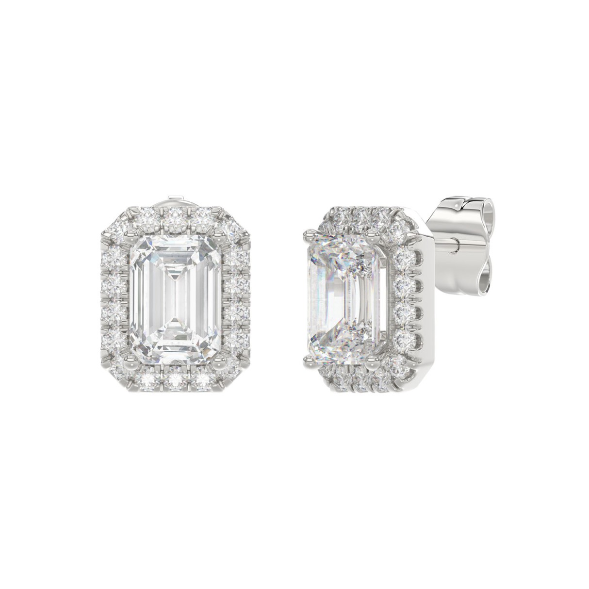 Home Earrings 14K WHITE GOLD 2 1/3CT ROUND/EMERALD DIAMOND LADIES EARRINGS (CENTER STONE EMERALD DIAMOND 1CT)
