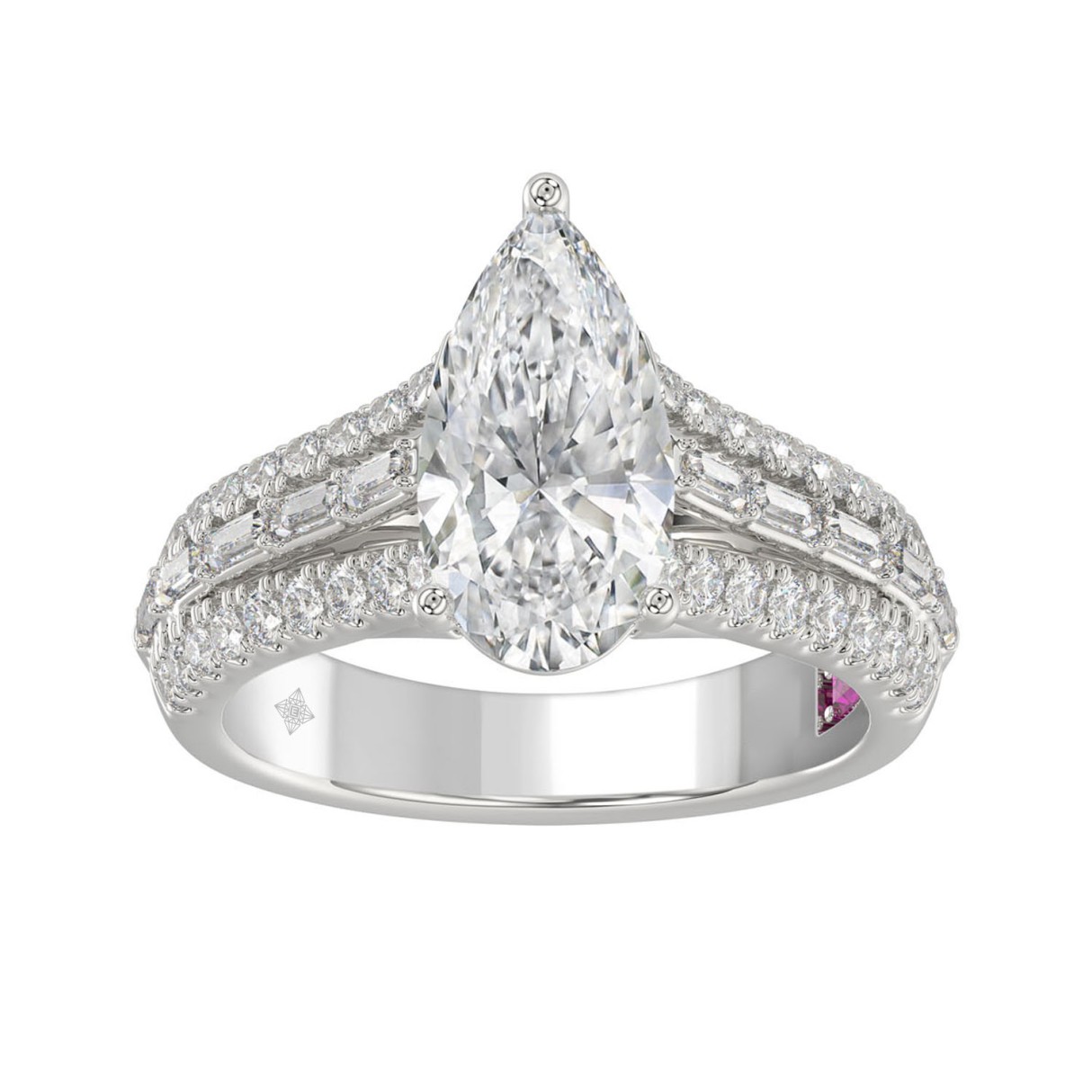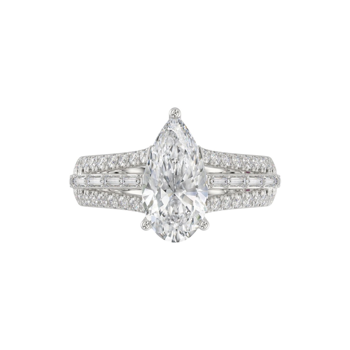 14K WHITE GOLD 2 3/4CT ROUND/BAGUETTE/PEAR DIAMOND LADIES RING (CENTER STONE PEAR DIAMOND 2CT)