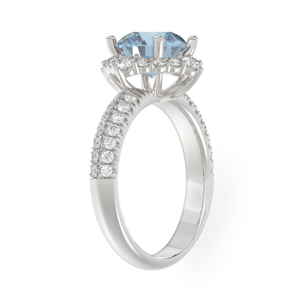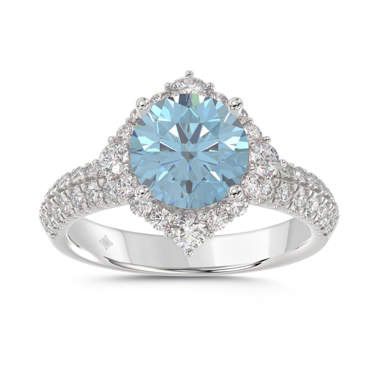 Home Rings 14K WHITE GOLD 2 3/4CT ROUND DIAMOND LADIES RING (CENTER STONE BLUE ROUND DIAMOND 2CT)