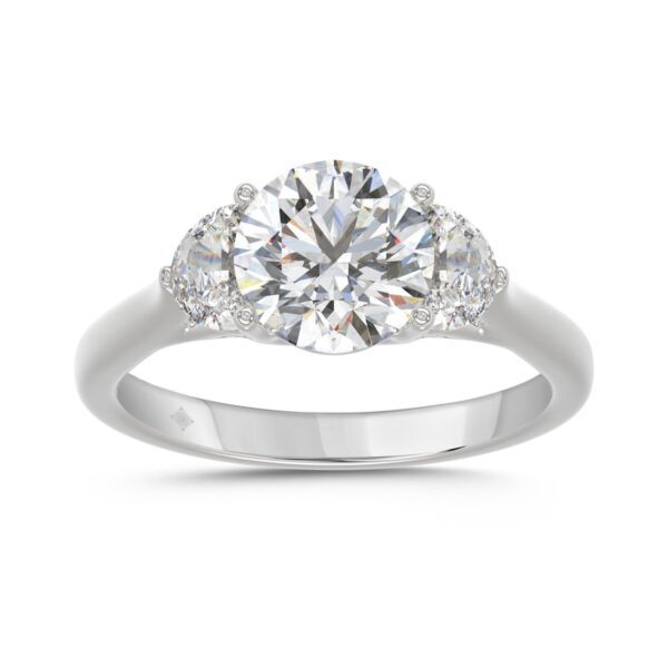 14K WHITE GOLD 2 5/8CT ROUND/HALFMOON DIAMOND LADIES RING (CENTER STONE ROUND DIAMOND 2CT)