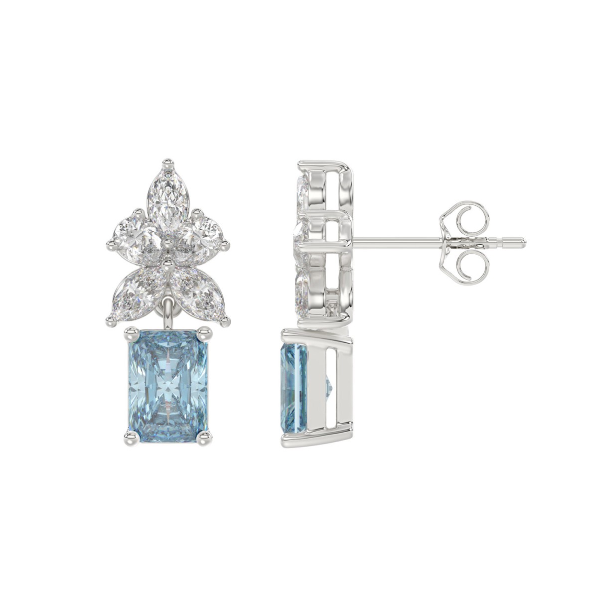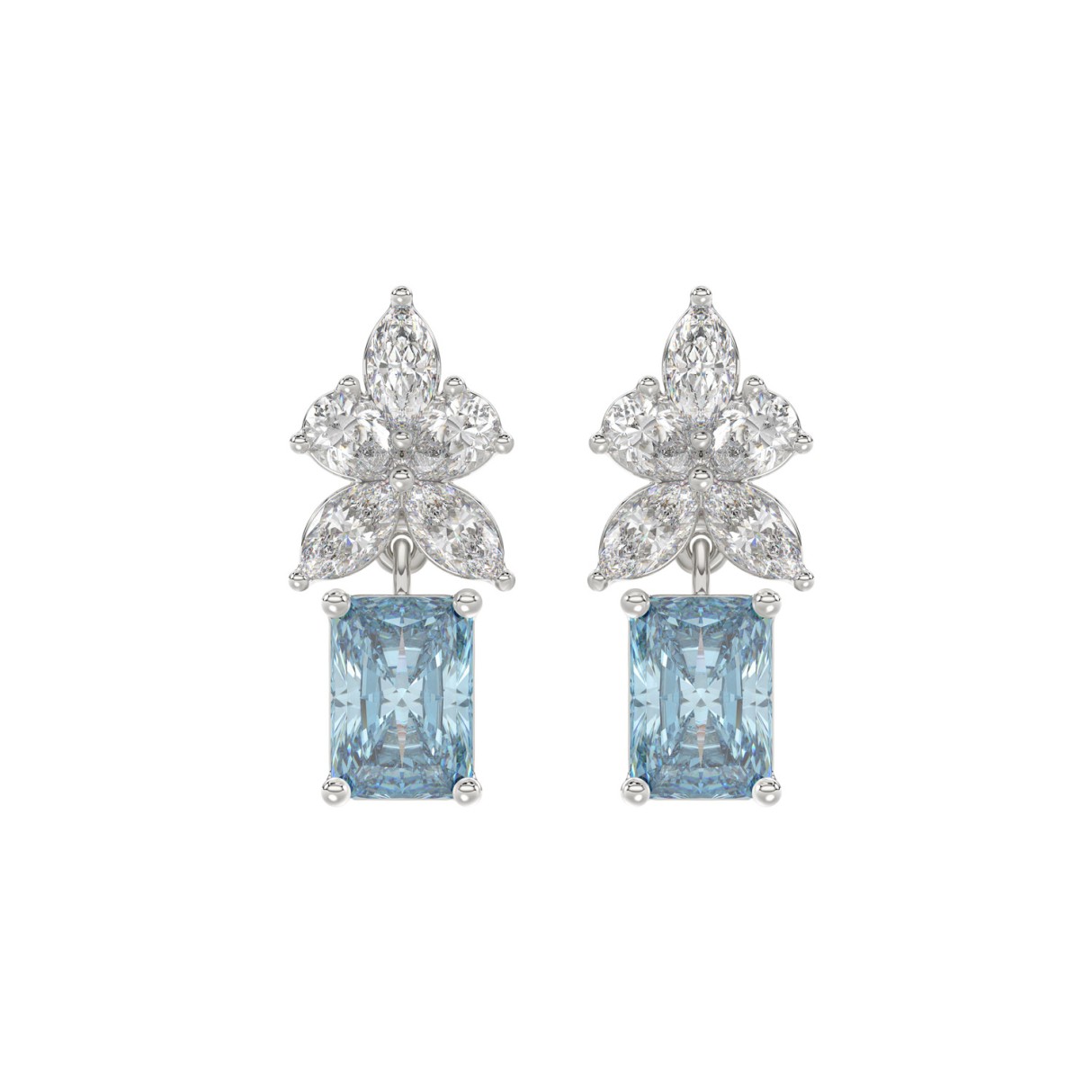 14K WHITE GOLD 3.00CT PEAR/MARQUISE/BLUE RADIANT DIAMOND LADIES EARRINGS
