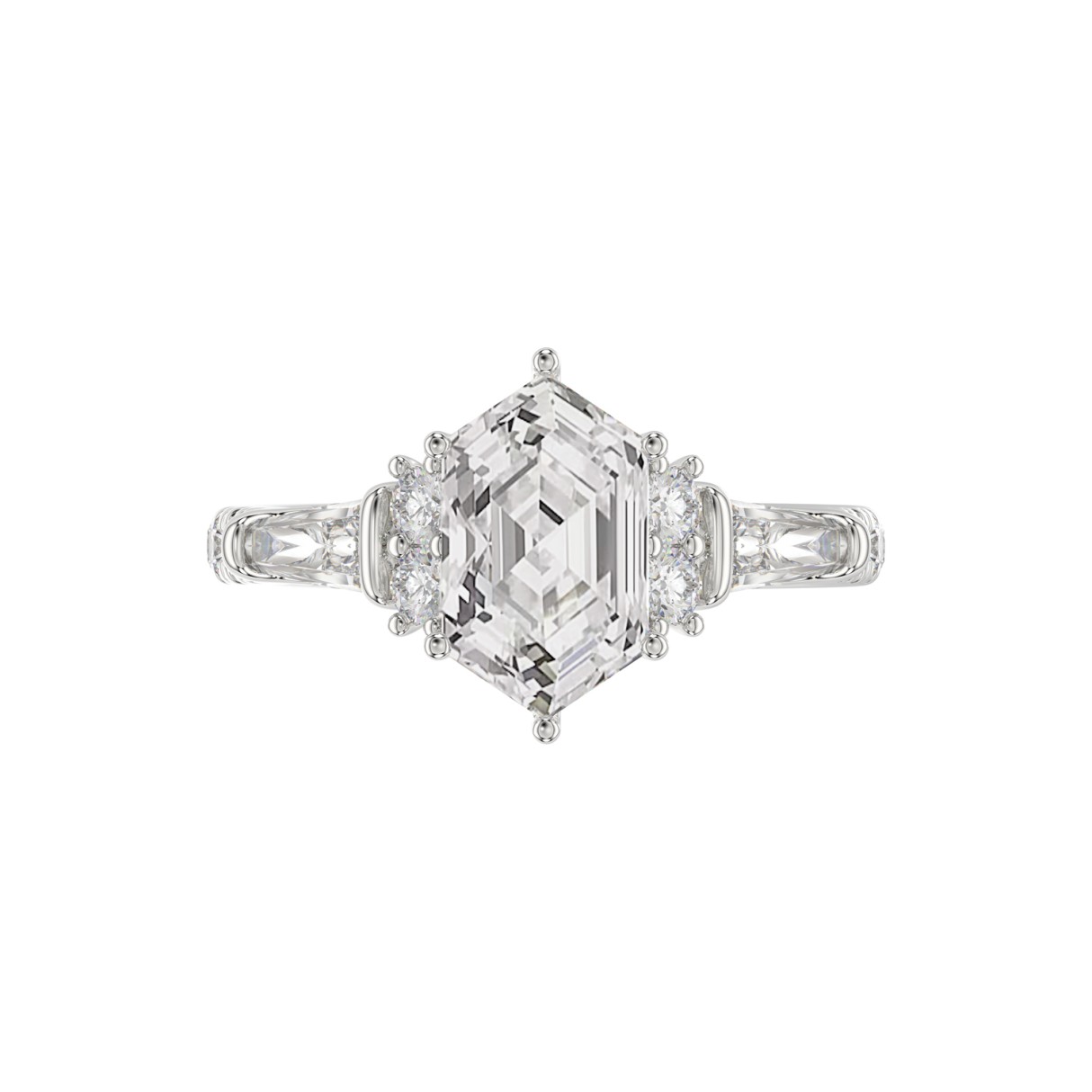Home Rings 14K WHITE GOLD 3.00CT ROUND/BAGUETTE/HEXAGON DIAMOND LADIES RING