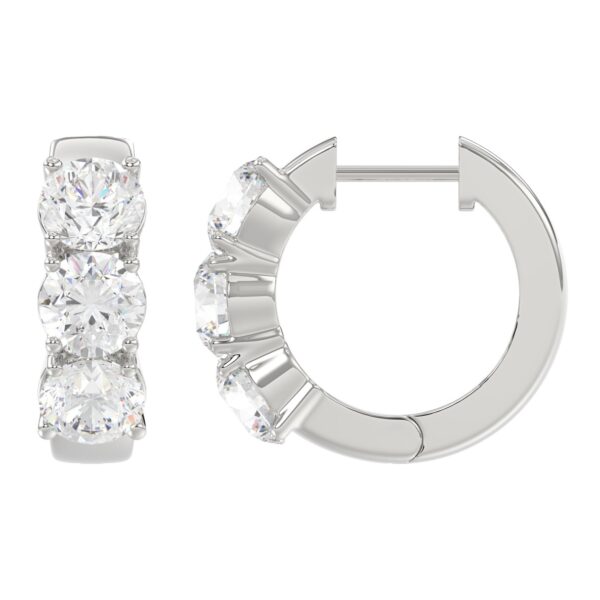 LADIES HOOP EARRINGS 2.00CT ROUND DIAMOND 10K WHITE GOLD