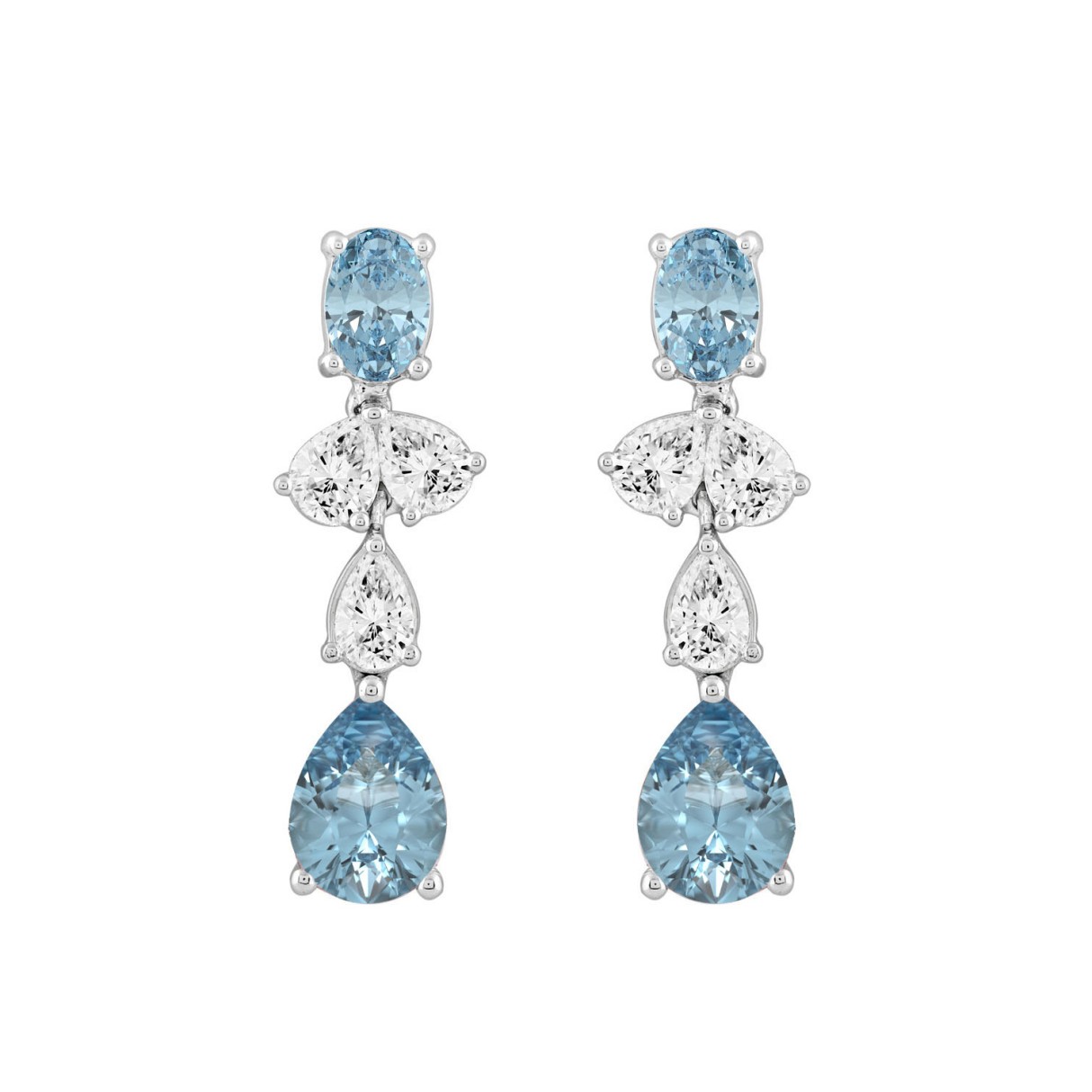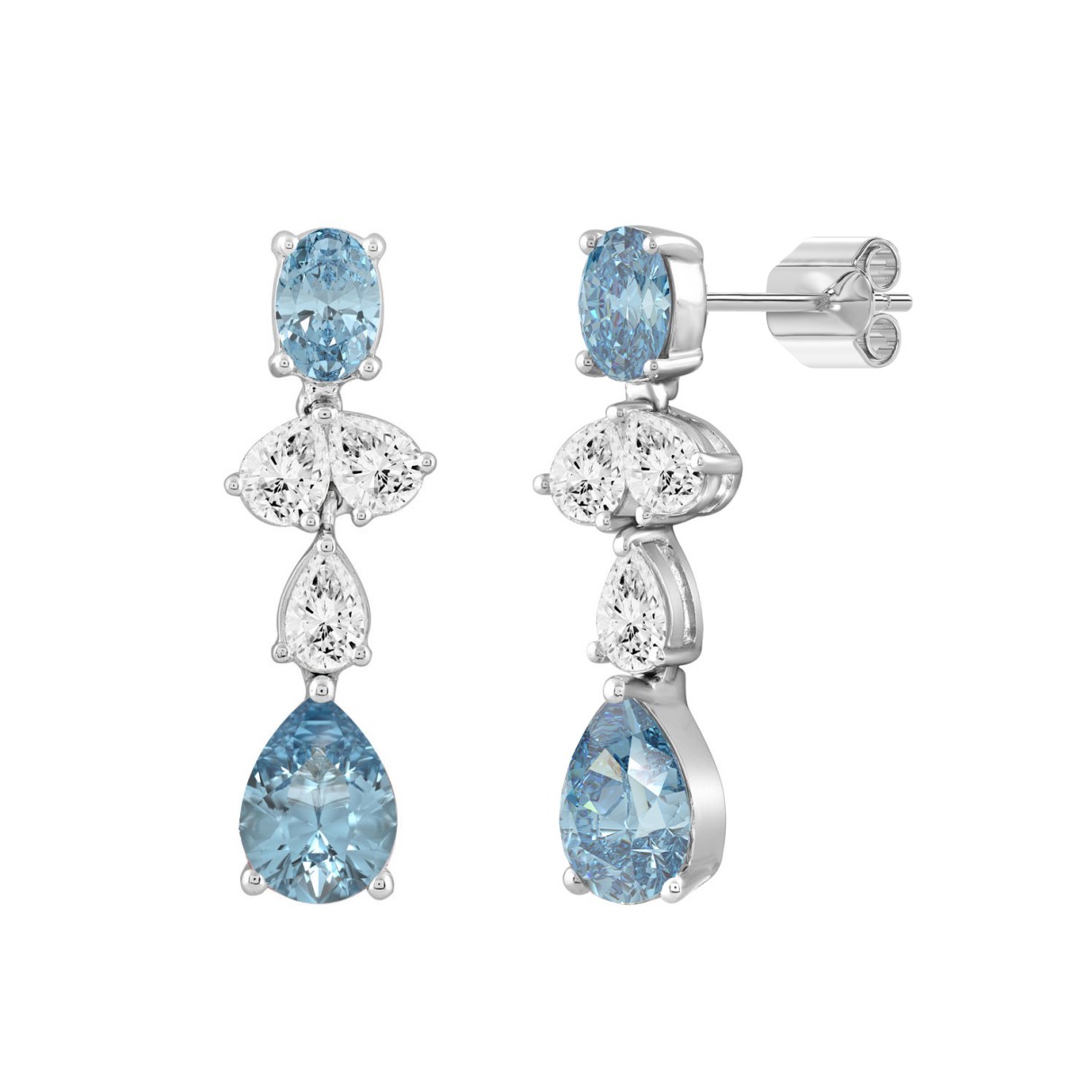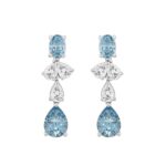 14K WHITE GOLD 3 1/2CT OVAL/PEAR DIAMOND LADIES EARRINGS (BLUE PEAR DIAMOND 3/4CT/BLUE OVAL DIAMOND 1/2CT)