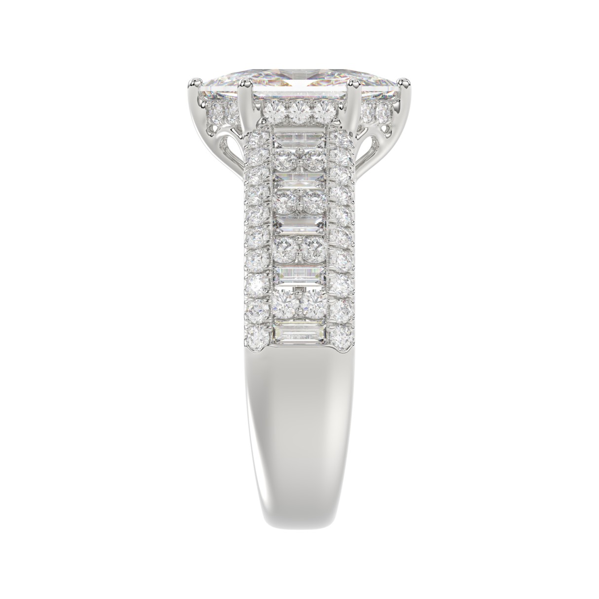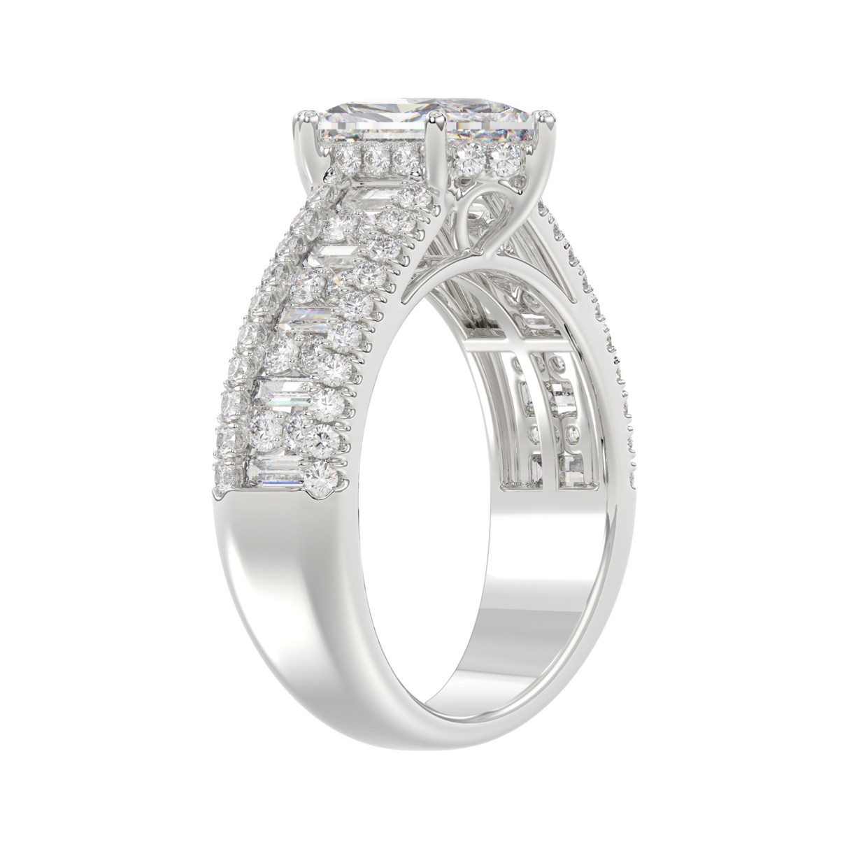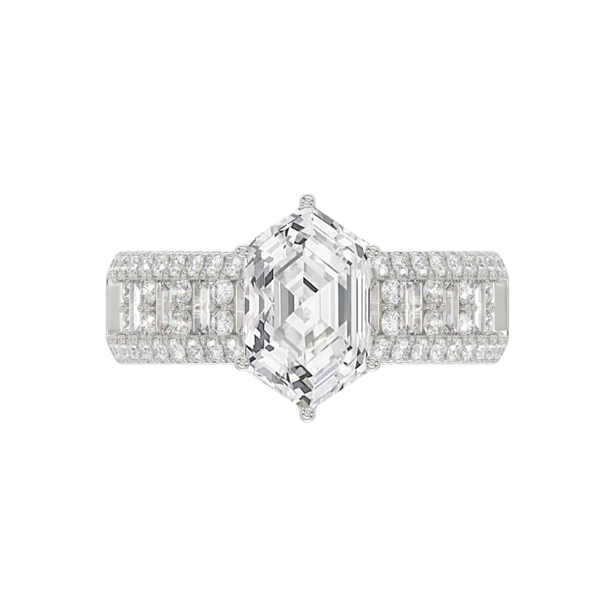 14K WHITE GOLD 3 1/2CT ROUND/BAGUETTE/HEXAGON DIAMOND LADIES RING