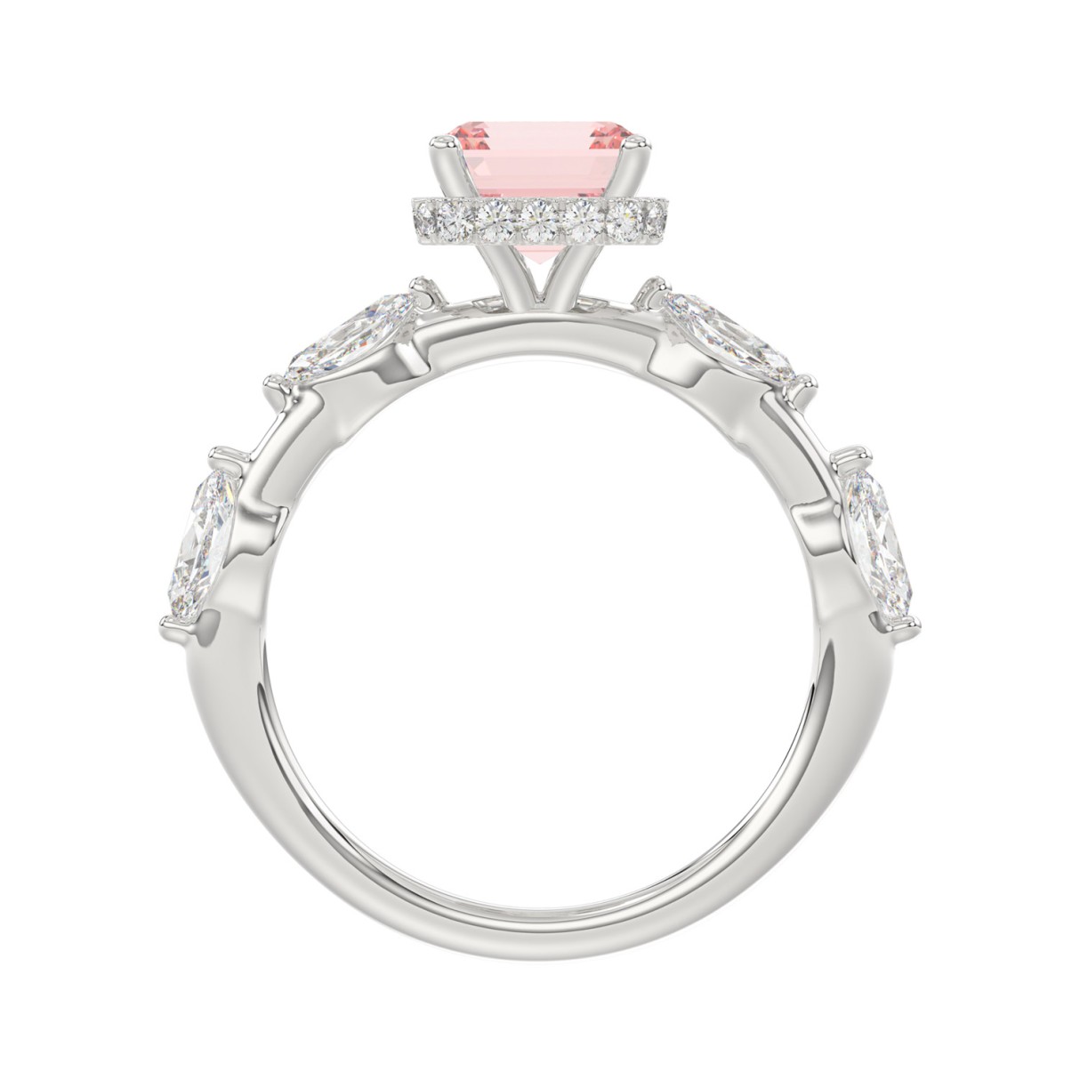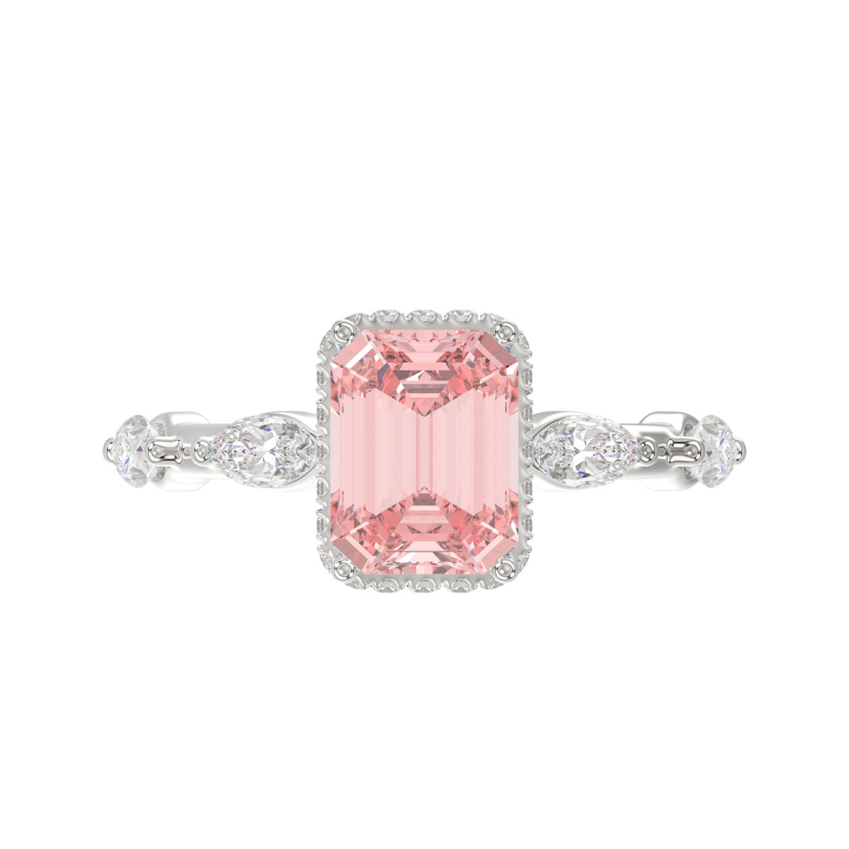 14K WHITE GOLD 3 1/2CT ROUND/MARQUISE/PINK EMERALD DIAMOND LADIES RING (CENTER STONE EMERALD DIAMOND 3.00CT)
