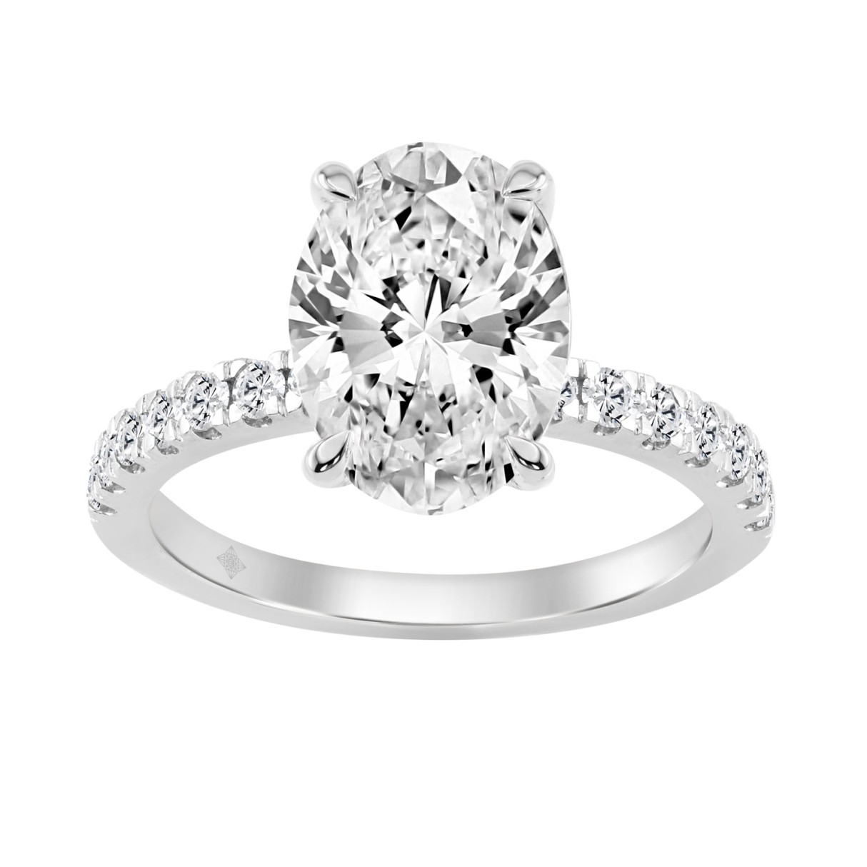 14K WHITE GOLD 3 1/2CT ROUND/OVAL DIAMOND LADIES RING (CENTER STONE OVAL DIAMOND 3CT)