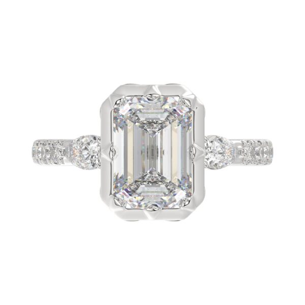 14K WHITE GOLD 3 1/2CT ROUND/PEAR/EMERALD DIAMOND LADIES RING (CENTER STONE EMERALD DIAMOND 3CT)