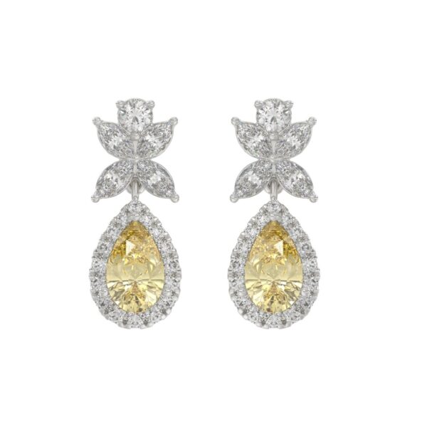 14K WHITE GOLD 3 1/2CT ROUND/YELLOW PEAR/MARQUISE DIAMOND LADIES EARRINGS