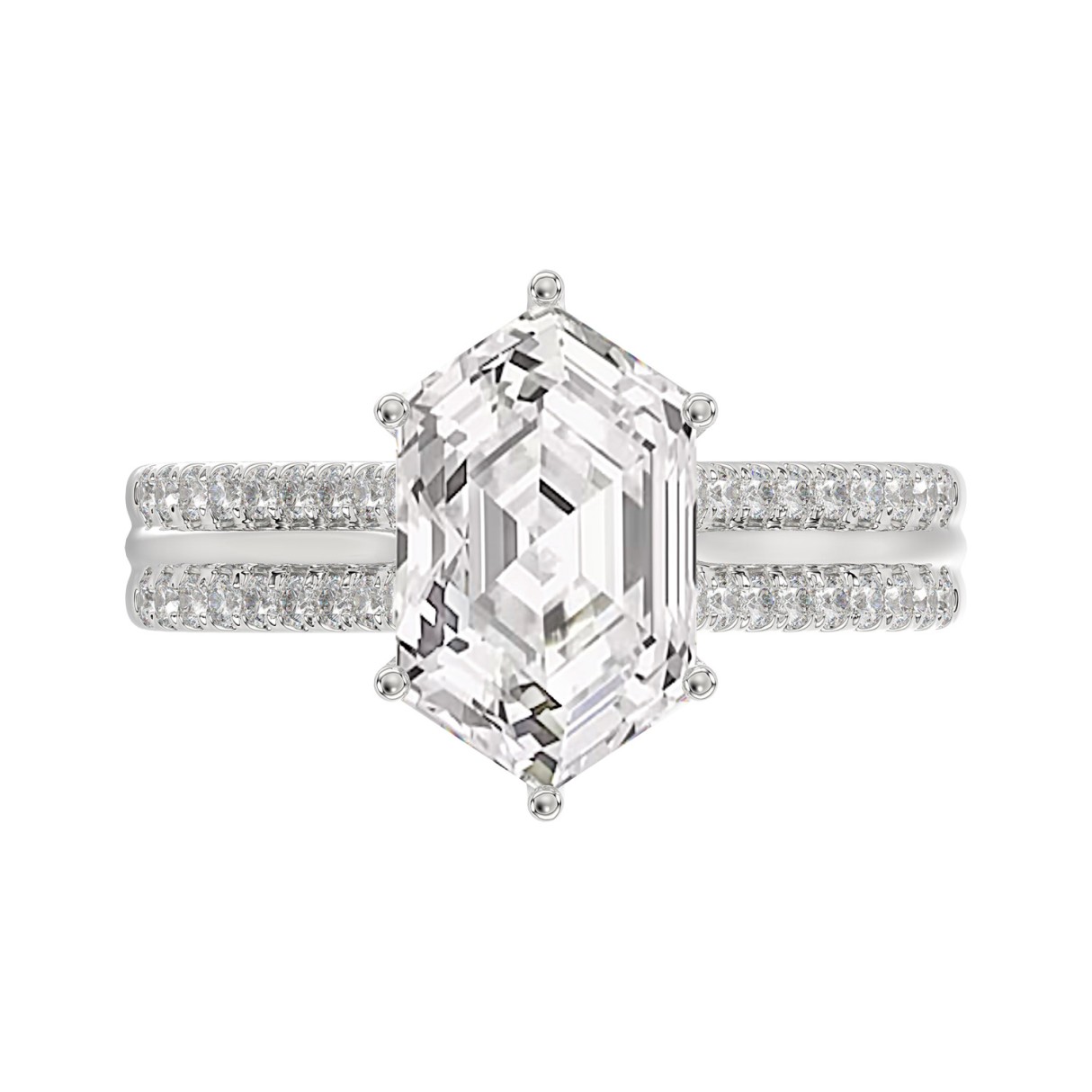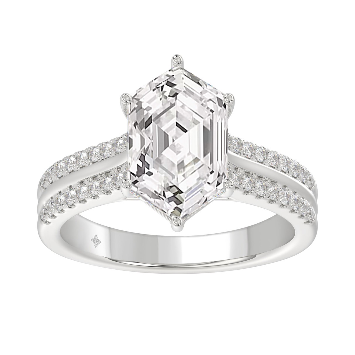 14K WHITE GOLD 3 1/4CT ROUND/HEXAGON DIAMOND LADIES RING (CENTER STONE HEXAGON STEP CUT DIAMOND 3CT