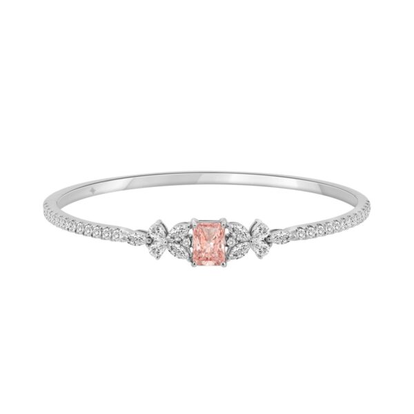 14K WHITE GOLD 3 1/4CT ROUND/PEAR/MARQUISE/PINK RADIANT DIAMOND LADIES BANGLE (CENTER STONE RADIANT DIAMOND 1 1/2CT