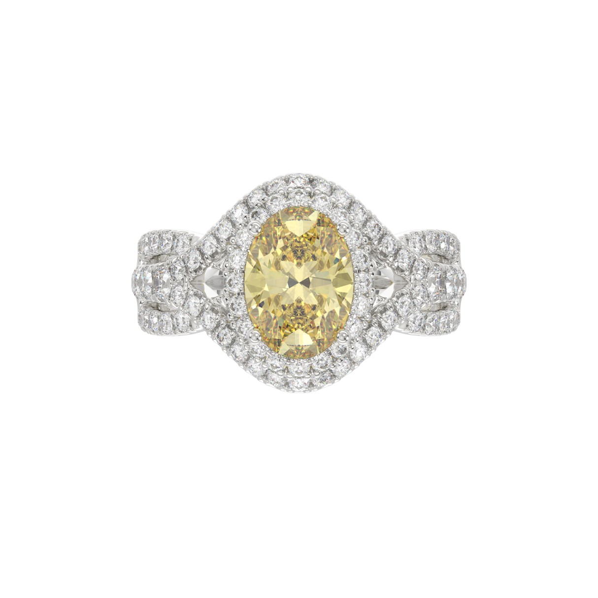 Home Rings 14K WHITE GOLD 3 1/4CT ROUND/YELLOW OVAL DIMAOND LADIES RING (CENTER STONE YELLOW OVAL DIAMOND 2.00CT)