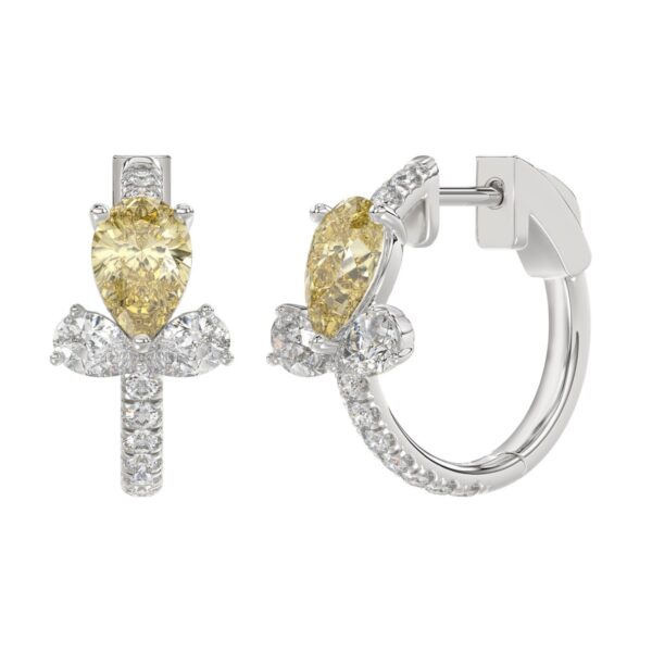 14K WHITE GOLD 3 1/4CT ROUND/YELLOW PEAR DIAMOND LADIES EARRINGS (YELLOW PEAR DIAMOND)