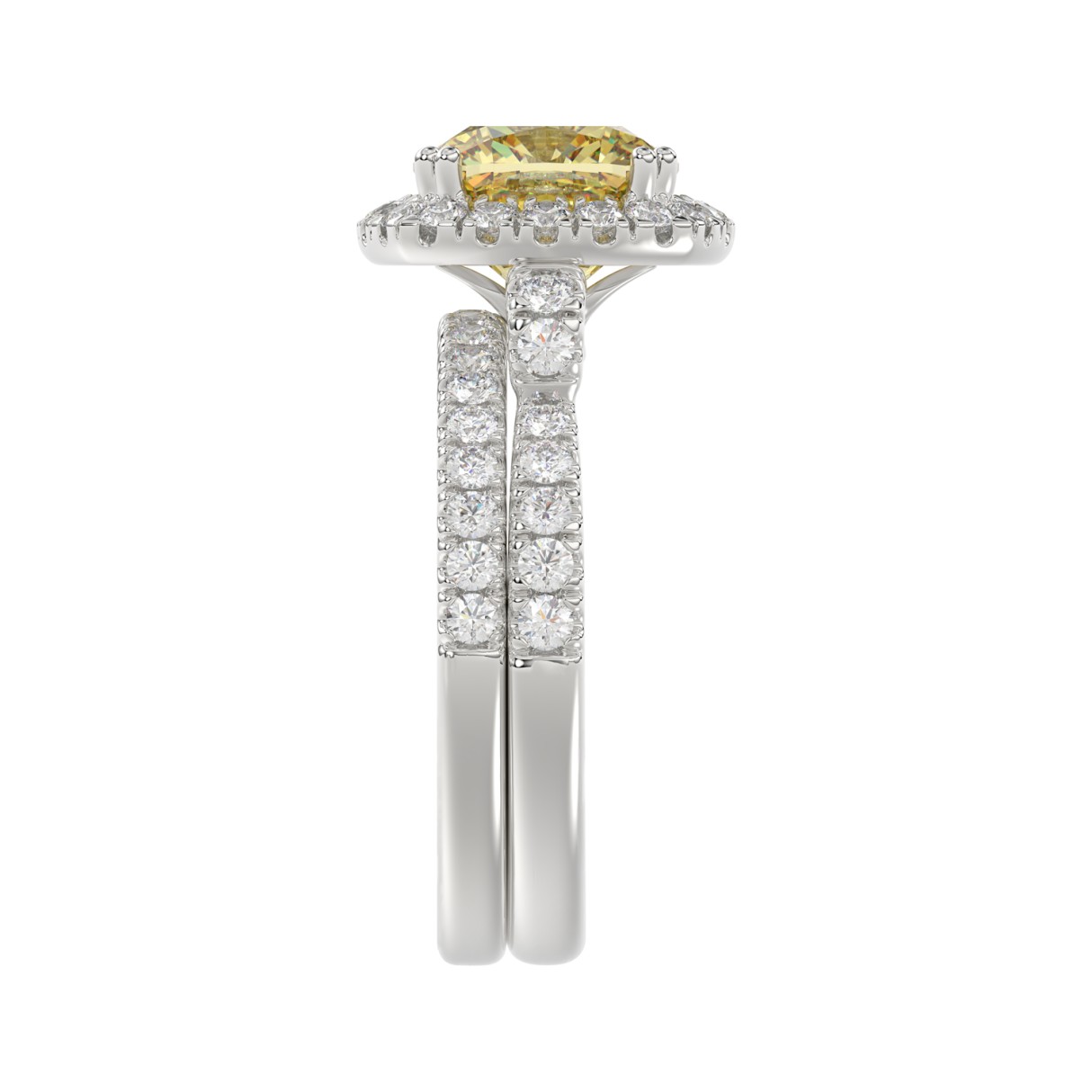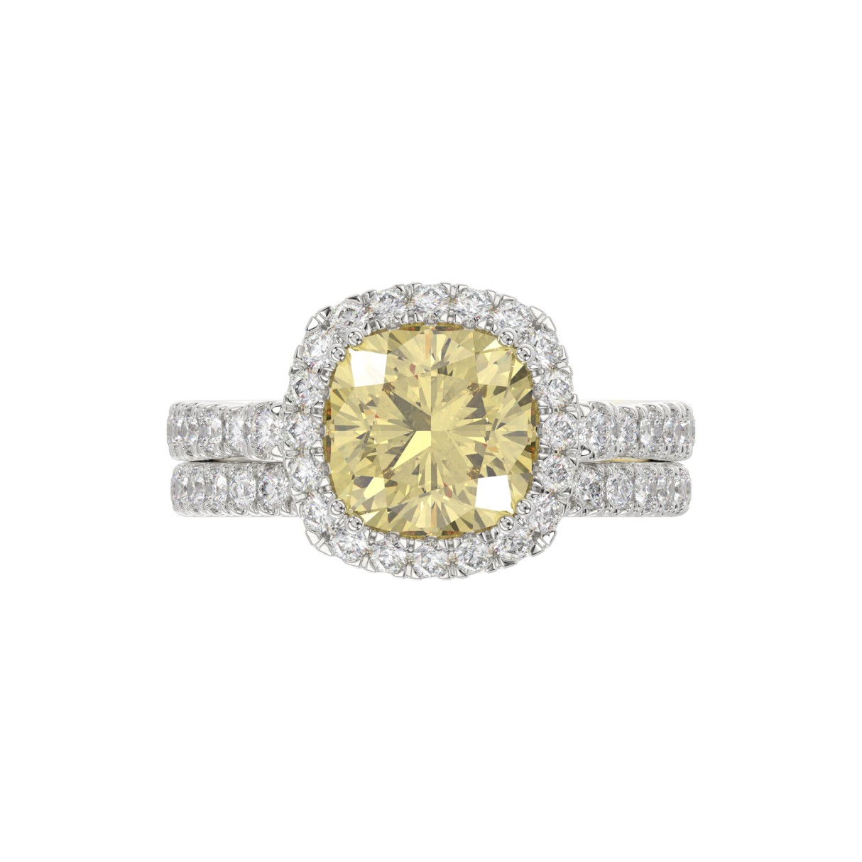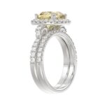 14K WHITE GOLD 3 3/4CT ROUND/CUSHION DIAMOND LADIES BRIDAL SET (CENTER STONE CUSHION YELLOW DIAMOND 3.00CT)