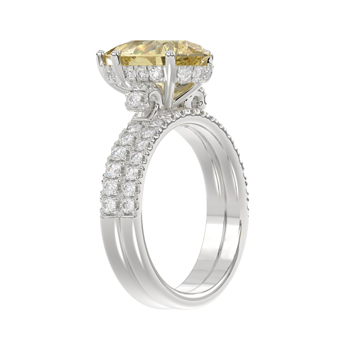 14K WHITE GOLD 3 3/4CT ROUND/PEAR DIAMOND LADIES BRIDAL SET (CENTER STONE PEAR YELLOW DIAMOND 3.00CT)