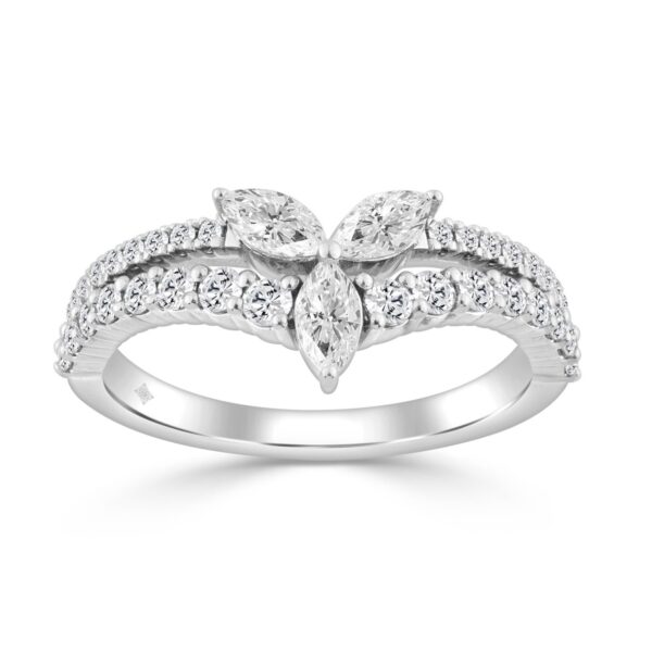14K WHITE GOLD 3/4CT ROUND/MARQUISE DIAMOND LADIES RING