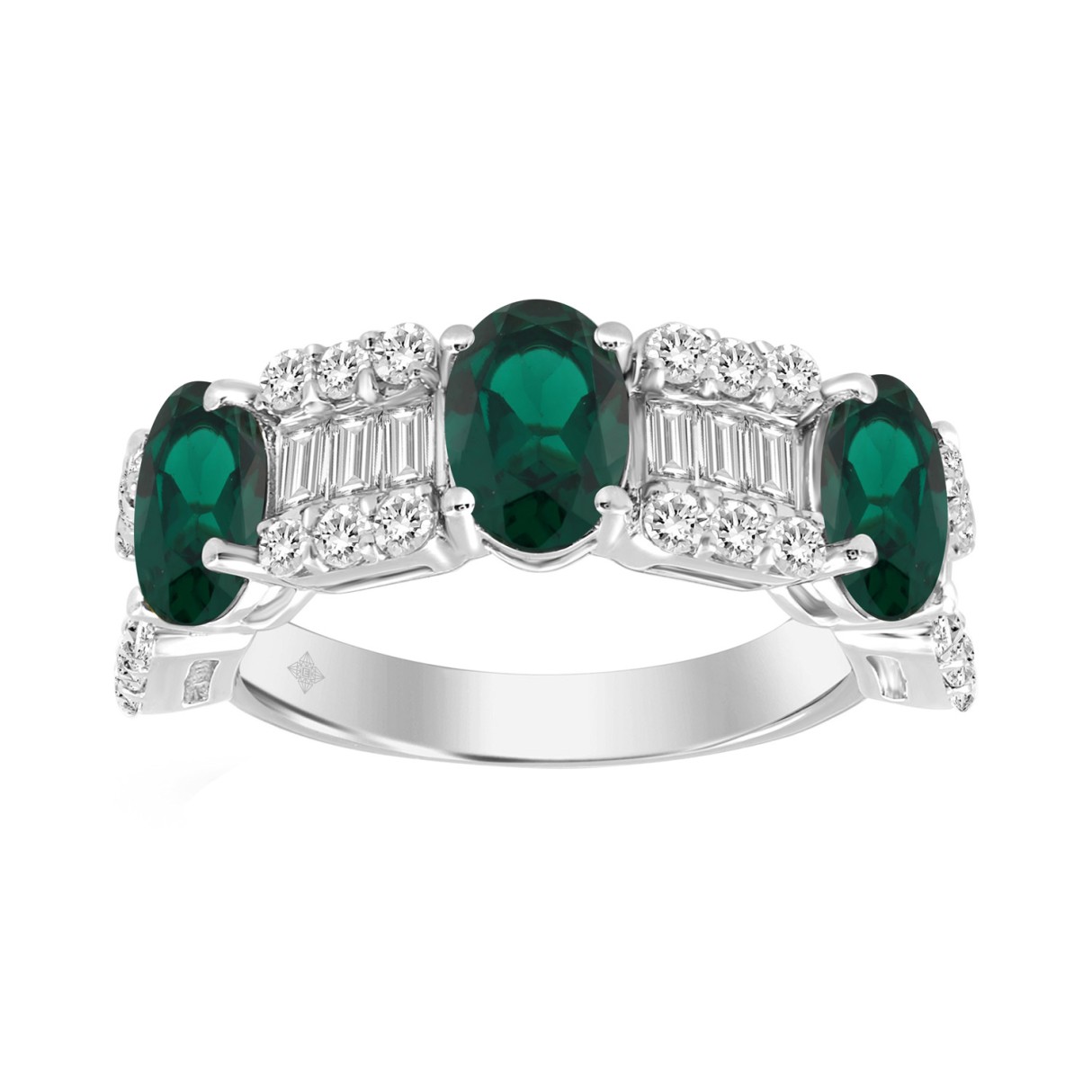 Home Rings 14K WHITE GOLD 3 5/8CT ROUND/BAGUETTE/OVAL DIAMOND LADIES BAND (GREEN EMERALD OVAL 2 1/3CT)