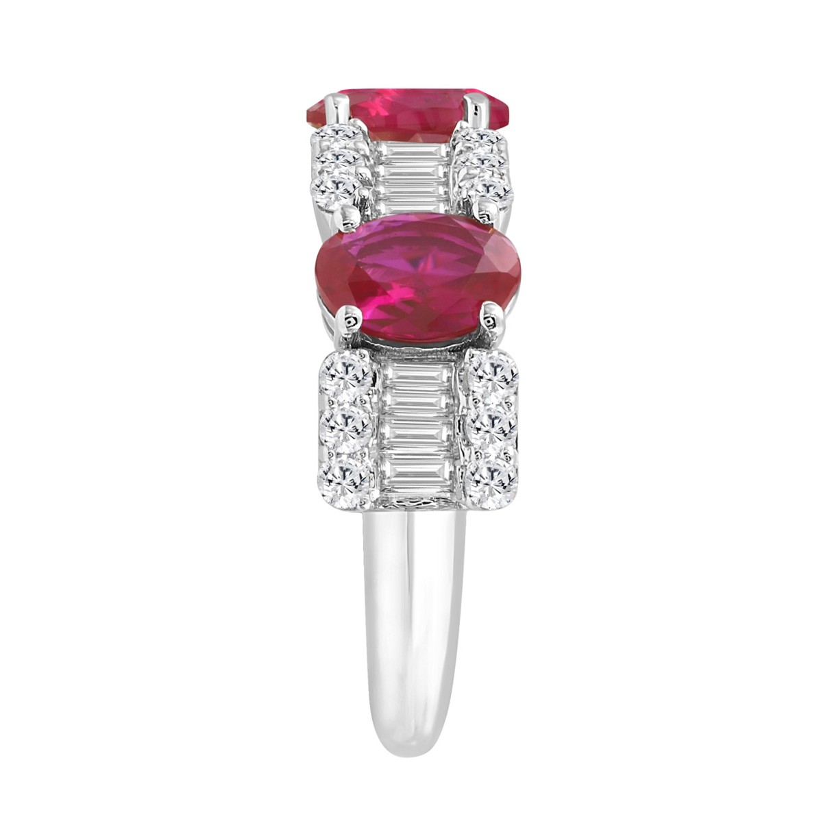 Home Rings 14K WHITE GOLD 3 5/8CT ROUND/BAGUETTE/OVAL DIAMOND LADIES BAND (OVAL RUBY 2 1/3CT)