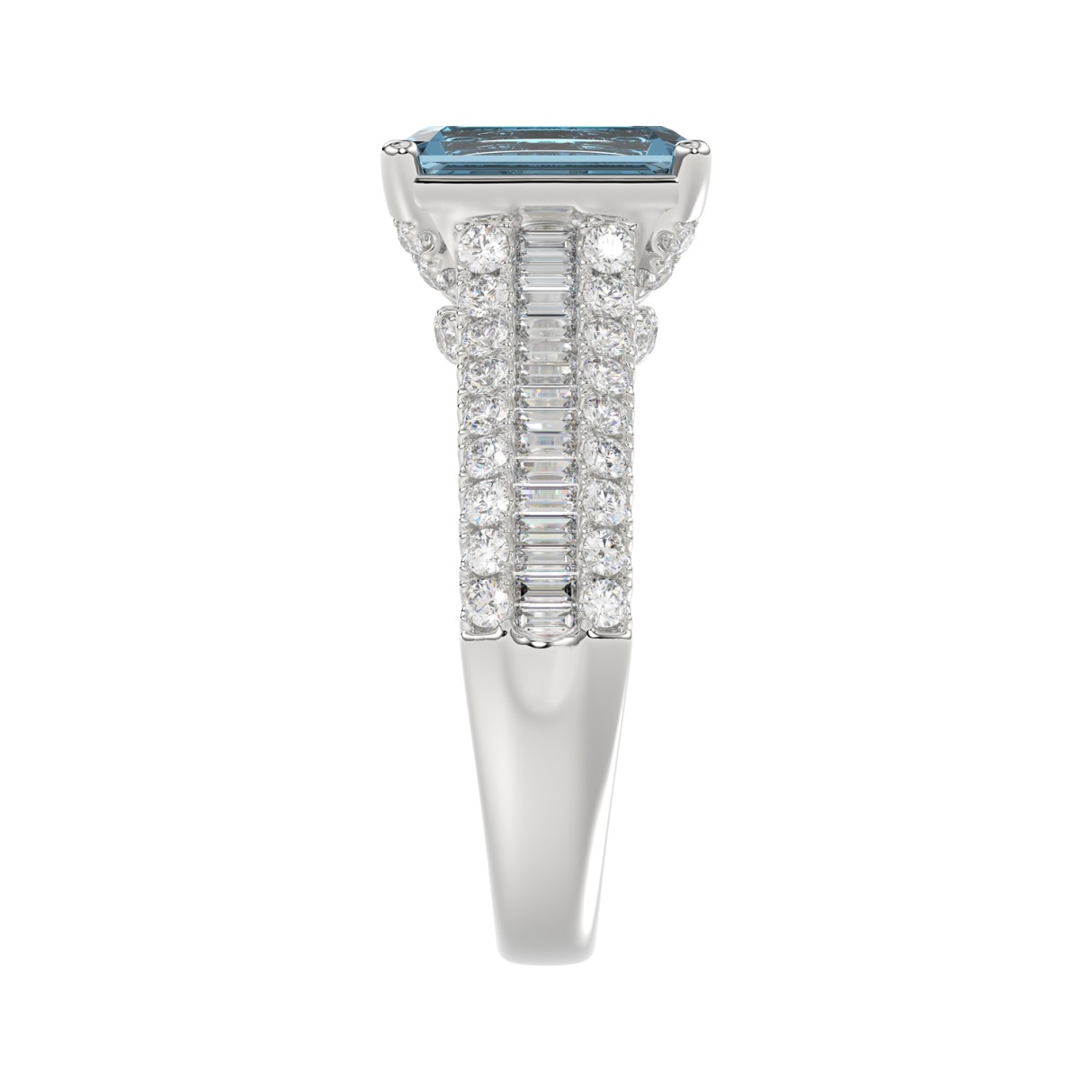 Home Rings 14K WHITE GOLD 4.00CT ROUND/RADIANT/BAGUETTE DIAMOND LADIES RING (CENTER STONE RADIANT BLUE DIAMOND 3.00CT)