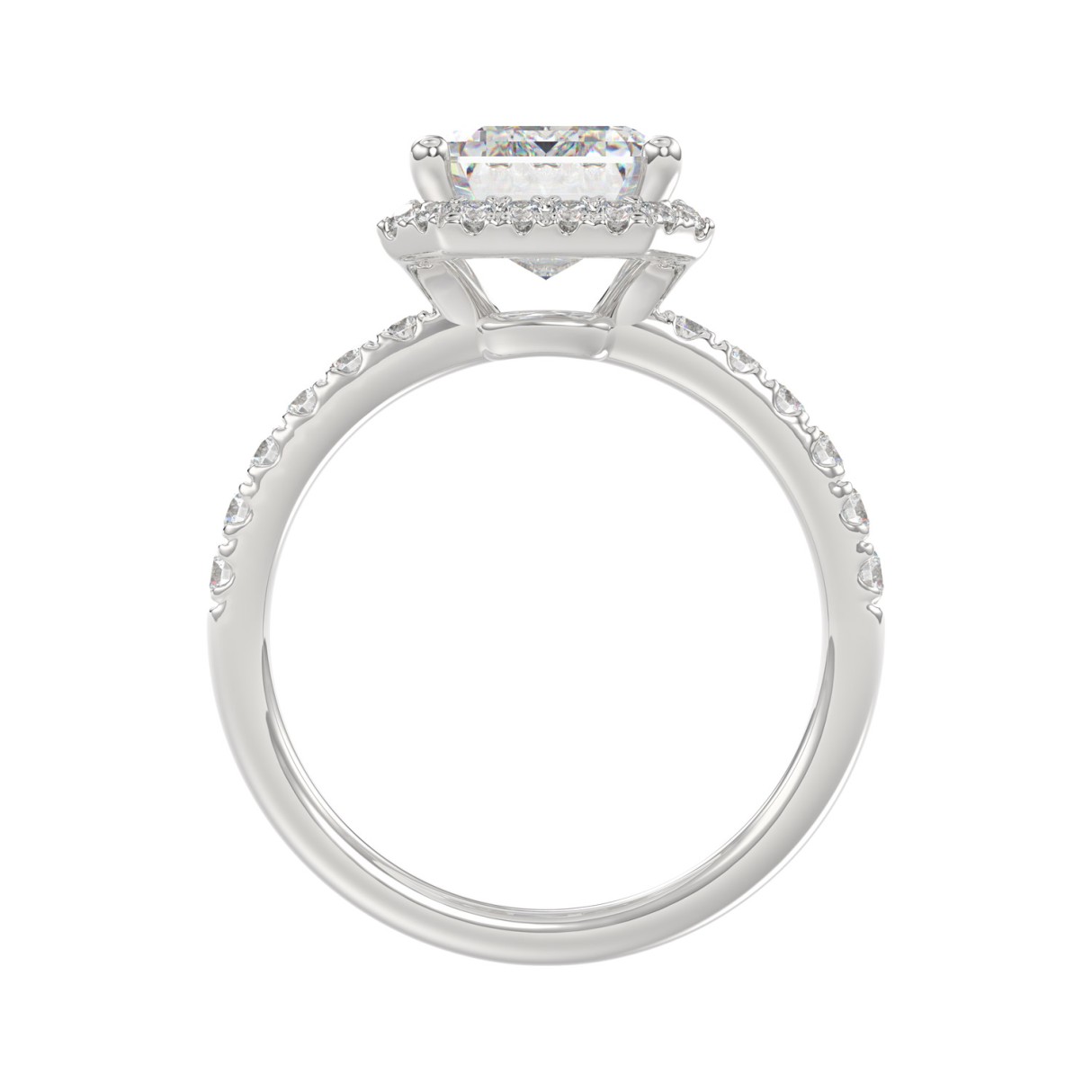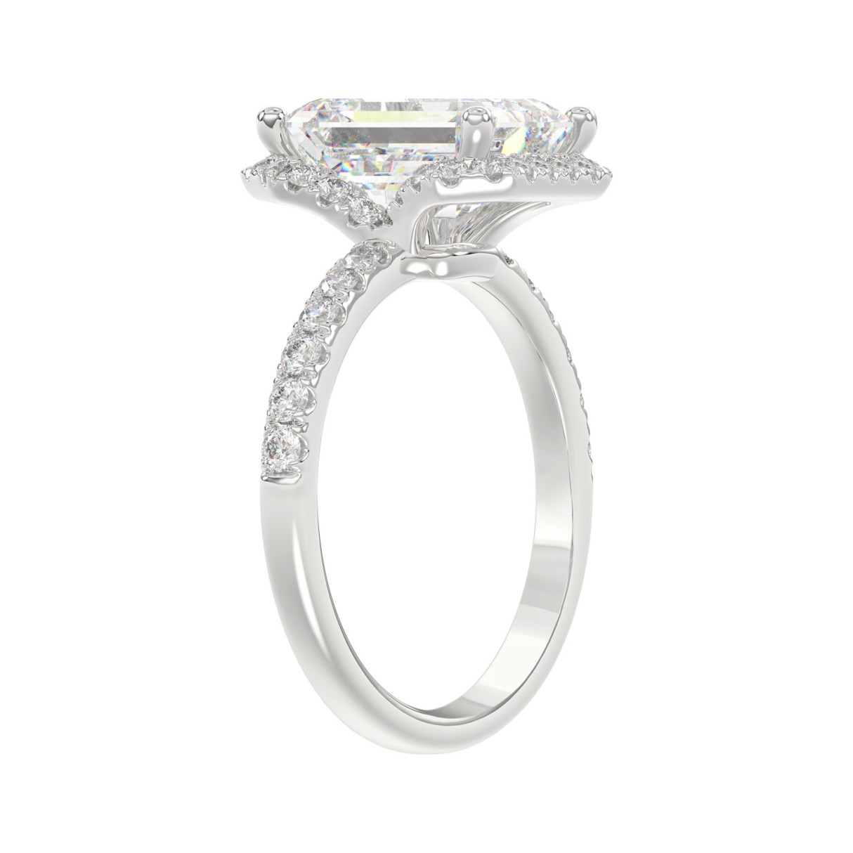 14K White Gold 4 1/2CT ladies Round & Emerald-cut diamond halo engagement Ring 4.00CT Emerald Center stone (Color F-G -Clarity VS1/VS2)