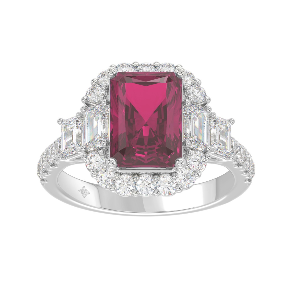 14K WHITE GOLD 4 1/2CT ROUND/EMERALD DIAMOND LADIES RING (CENTER STONE RUBY EMERALD DIAMOND 3CT)