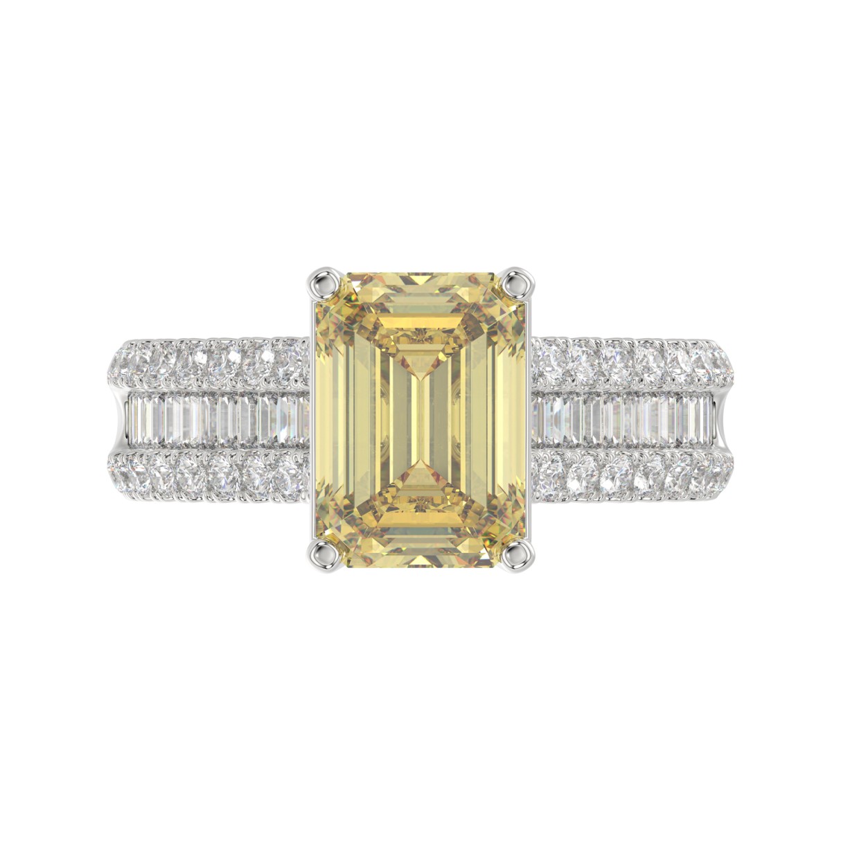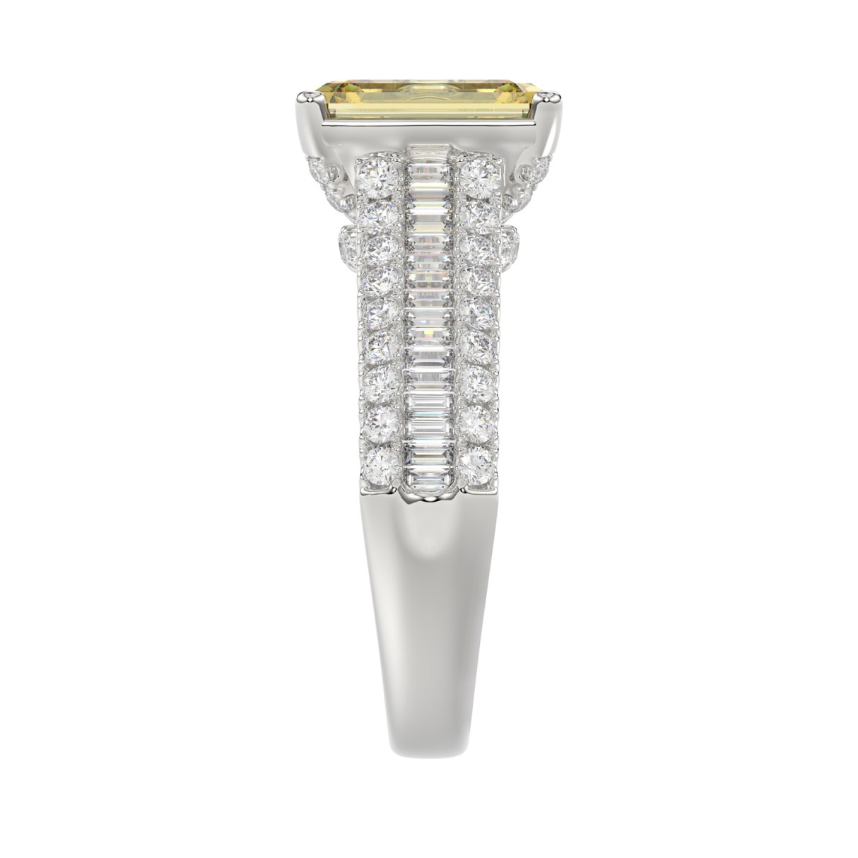 Home Rings 14K WHITE GOLD 5 1/4CT ROUND/BAGUETTE/RADIANT DIAMOND LADIES RING (CENTER STONE YELLOW RADIANT DIAMOND 3.00CT)
