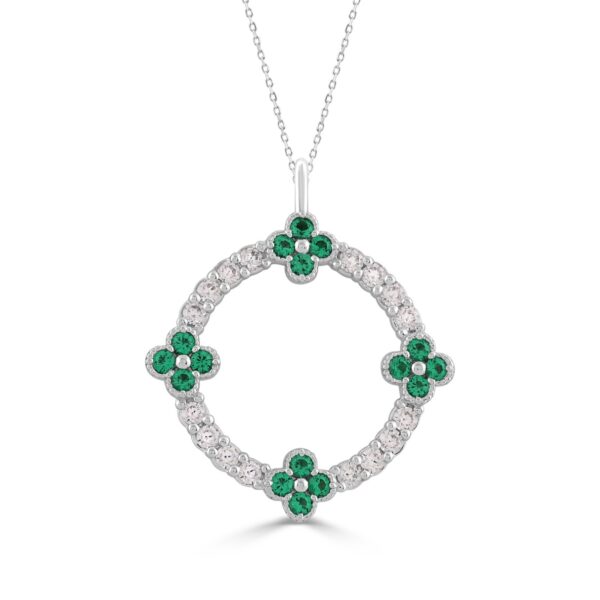 14K WHITE GOLD 5/8CT ROUND/ROUND GREEN DIAMOND LADIES PENDANT