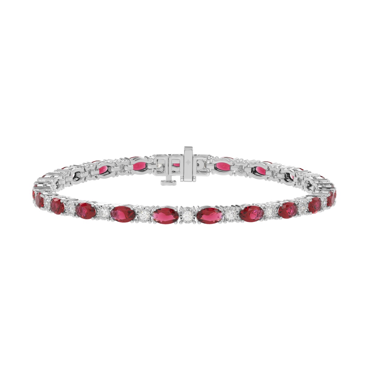 Home Bracelets 14K WHITE GOLD 6 7/8CT ROUND/RUBY OVAL DIAMOND LADIES BRACELET (OVAL RUBY 6 1/6CT)