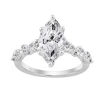 14K White Gold Bridal Fashion Ring for Ladies 4CT Round & Marquise& Pear Cut Diamonds 3.00CT Marquise Center stone (Color F-G -Clarity VS1/VS