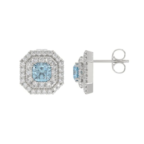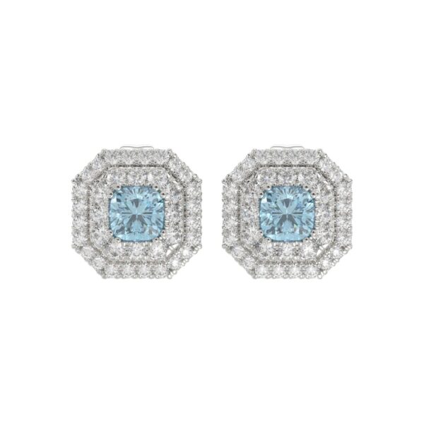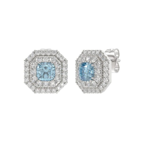 Home Earrings 14K WHITE GOLD CRAFTED WITH 18K YELLOW GOLD BACK PLATE 1 1/2CT ROUND/BLUE CUSHION DIAMOND LADIES EARRINGS