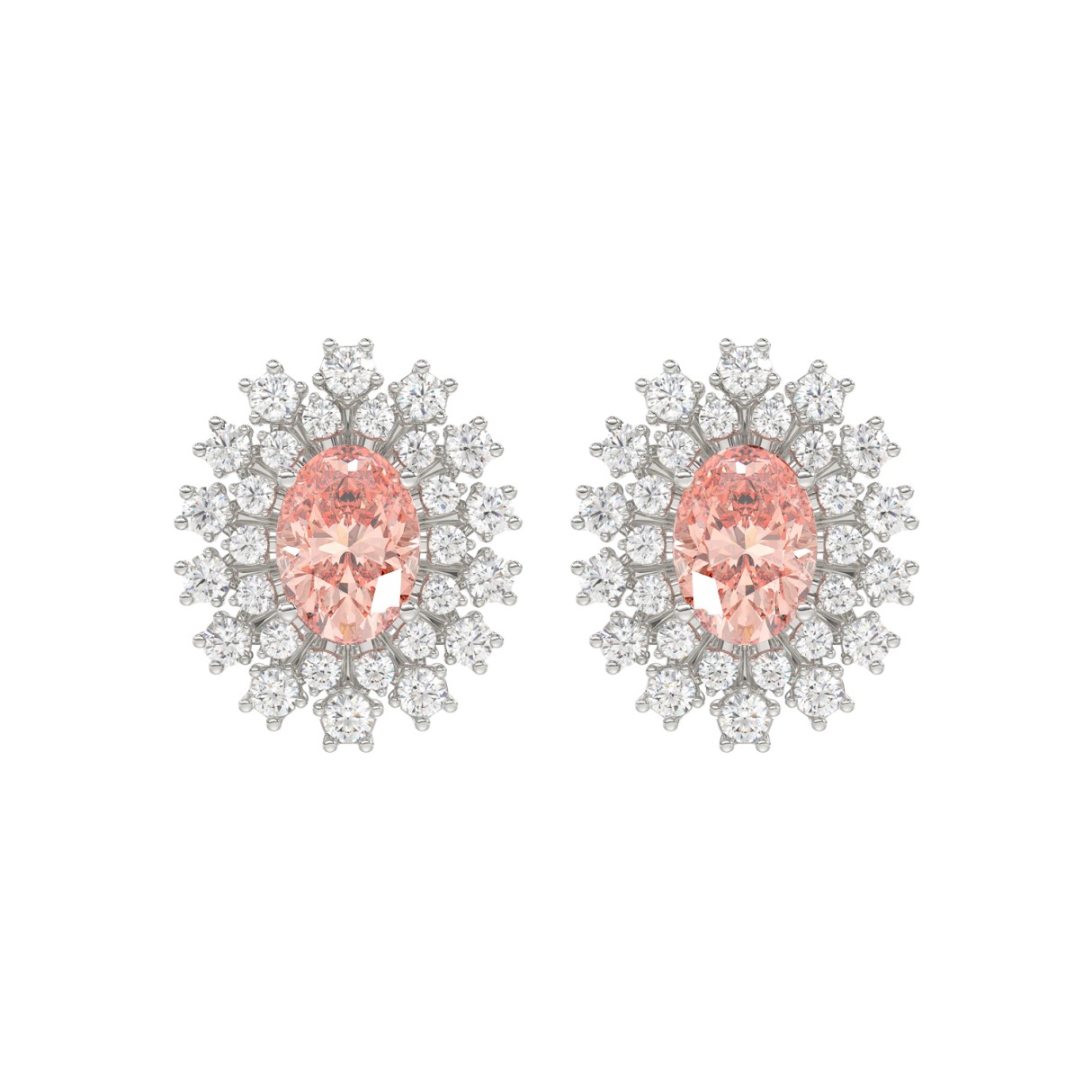 Home Earrings 14K WHITE GOLD CRAFTED WITH 18K YELLOW GOLD BACK PLATE 1 1/2CT ROUND/PINK OVAL DIAMOND LADIES EARRINGS