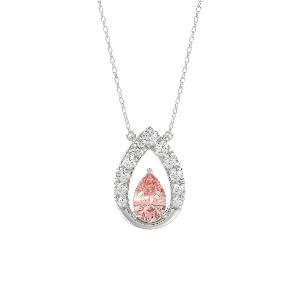 LADIES PENDANT 1CT ROUND/PEAR DIAMOND 14K WHITE GOLD