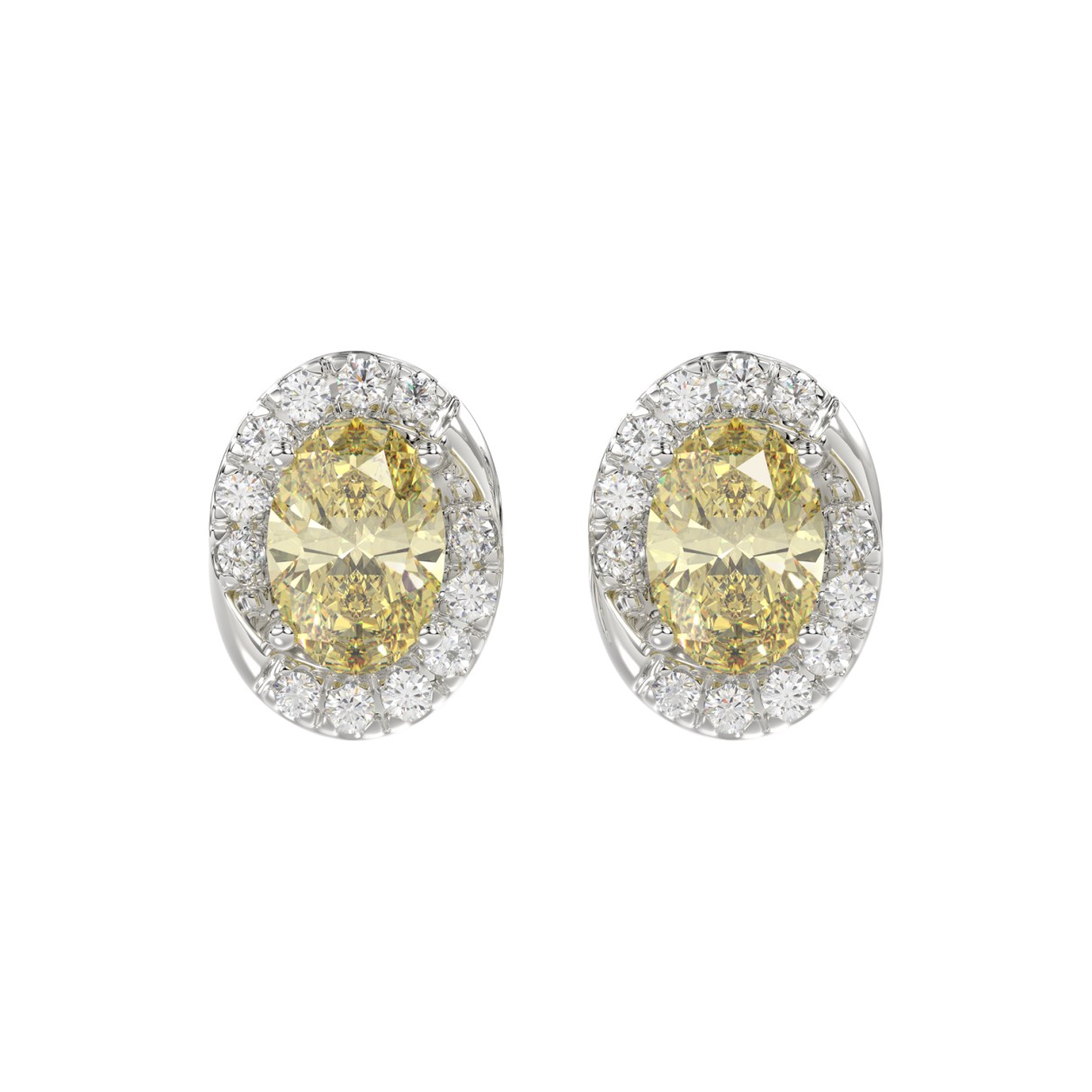 14K WHITE GOLD CRAFTED WITH 18K YELLOW GOLD BACK PLATE 1 1/4CT ROUND/YELLOW OVAL DIAMOND LADIES EARRINGS