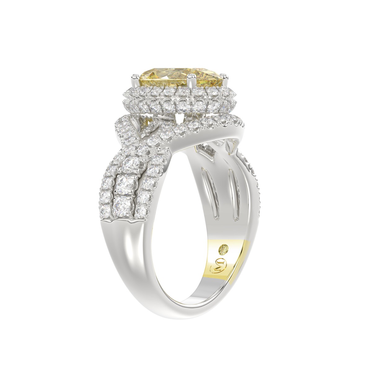 14K WHITE GOLD CRAFTED WITH 18K YELLOW GOLD SHANK 3 1/4CT ROUND/YELLOW OVAL DIMAOND LADIES RING (CENTER STONE YELLOW OVAL DIAMOND 2.00CT)