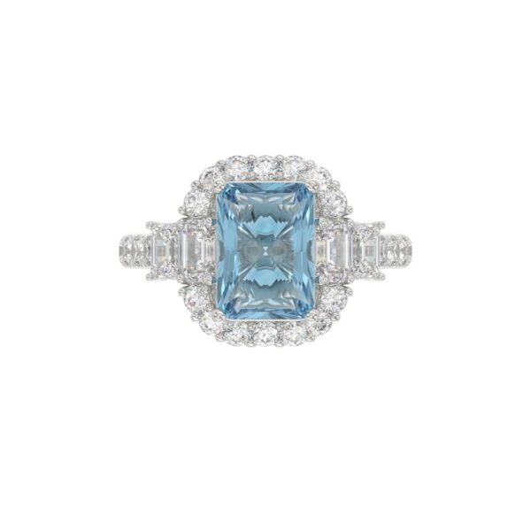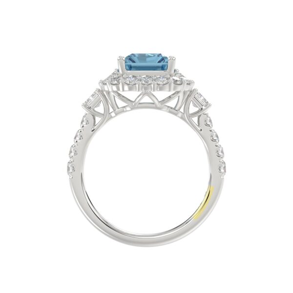 14K WHITE GOLD CRAFTED WITH 18K YELLOW GOLD SHANK 4 1/2CT ROUND/EMERALD DIAMOND LADIES RING (CENTER STONE EMERALD BLUE DIAMOND 3.00CT)