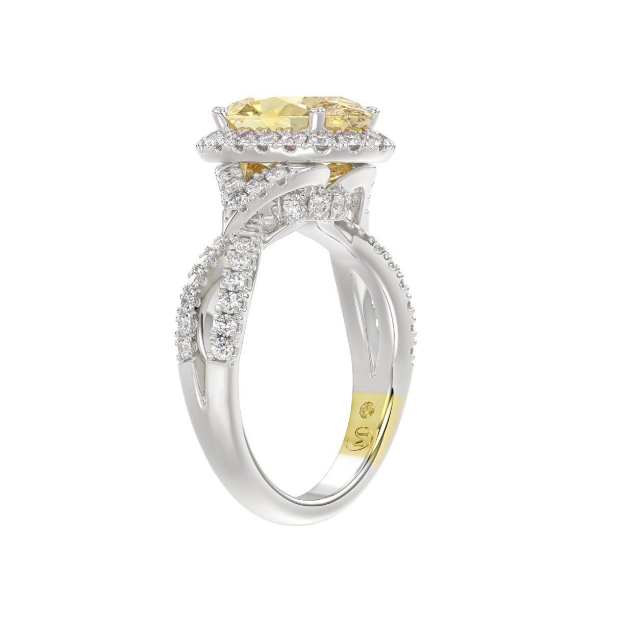 14K WHITE GOLD CRAFTED WITH 18K YELLOW GOLD SHANK 4 1/2CT ROUND/YELLOW OVAL DIMAOND LADIES RING (CENTER STONE YELLOW OVAL DIAMOND 2.00CT)