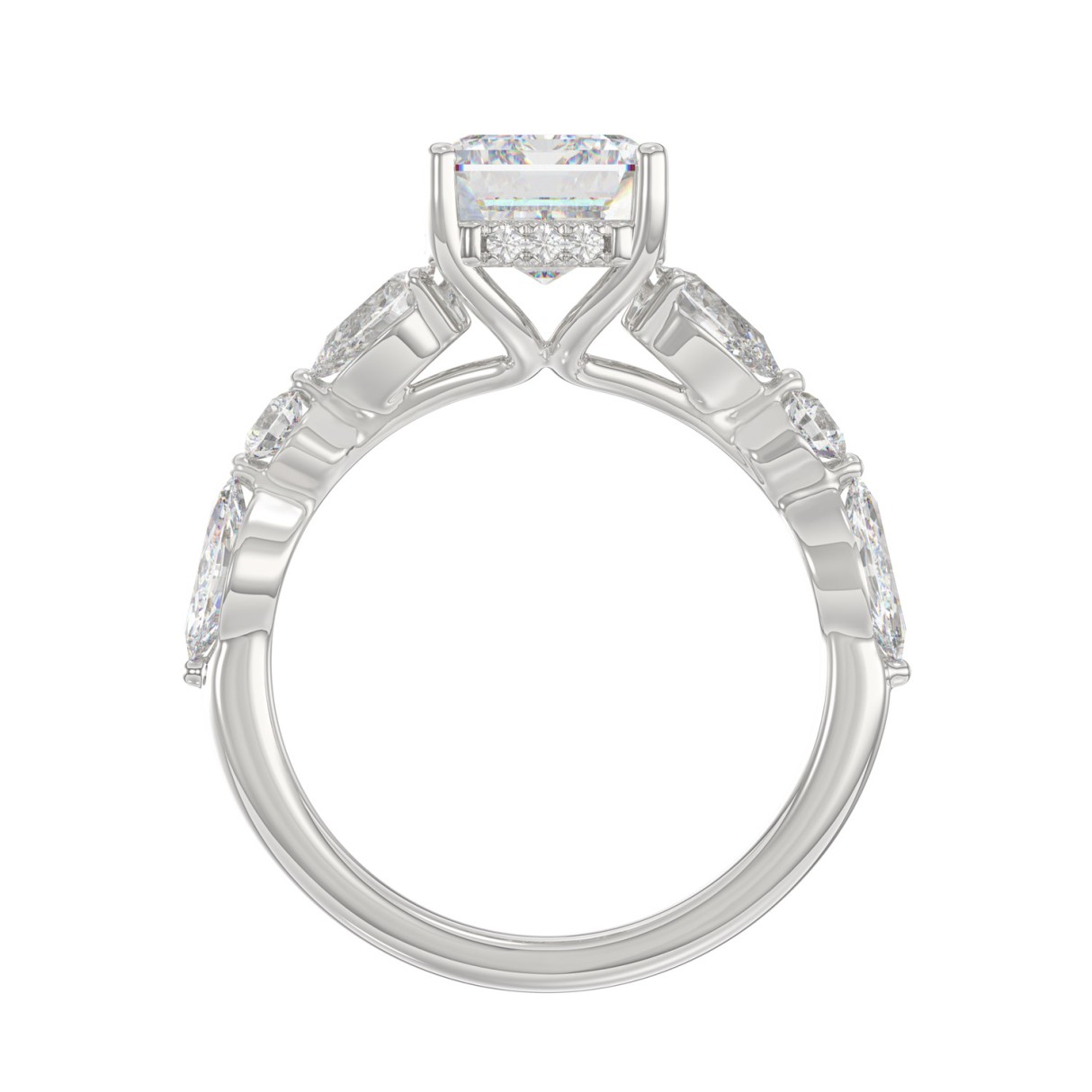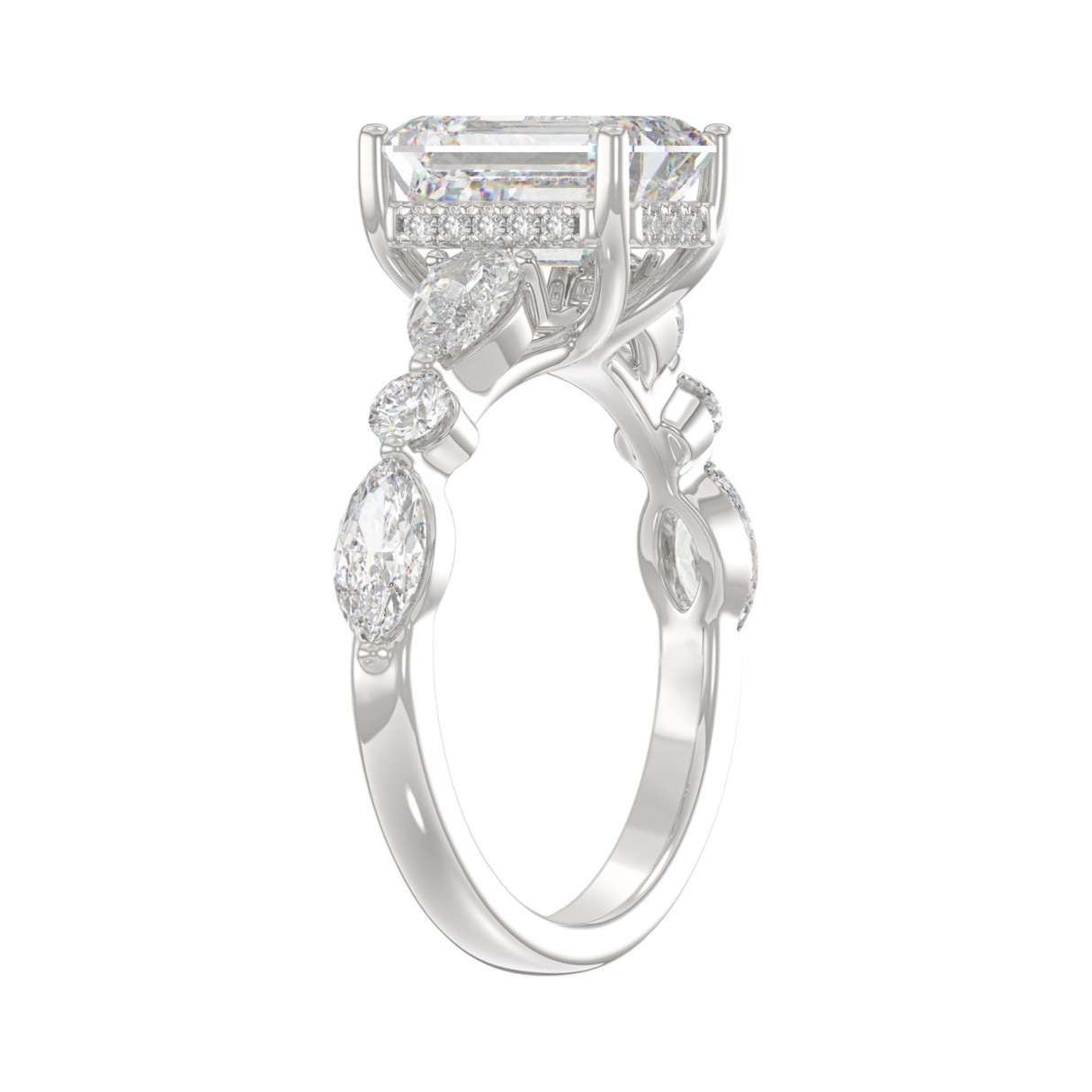 14K White Gold Emerald Cut Diamond Classic Bridal Ring for Ladies 4.00CT with Pear Round & Marquise Diamond 3.00CT Emerald Center stone (Color F-G