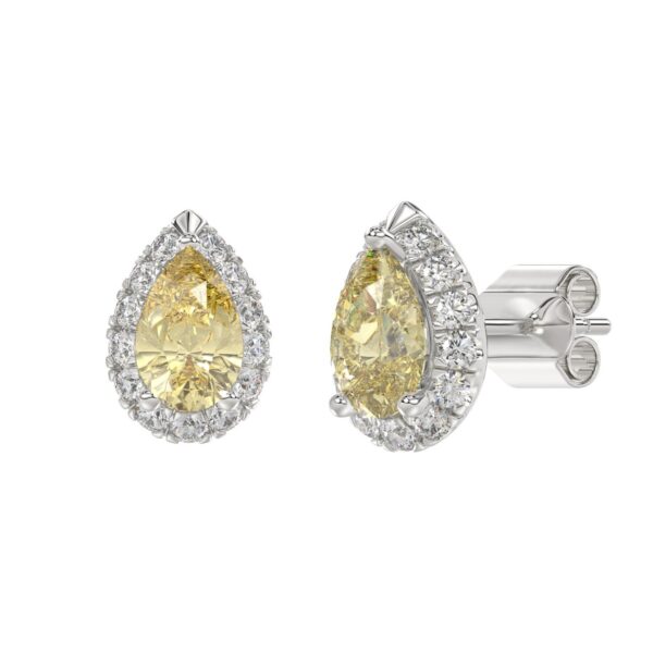 14K WHITE/YELLOW GOLD 2 1/2CT ROUND/YELLOW PEAR DIAMOND LADIES EARRING (CENTER STONE PEAR DIAMOND 1CT)