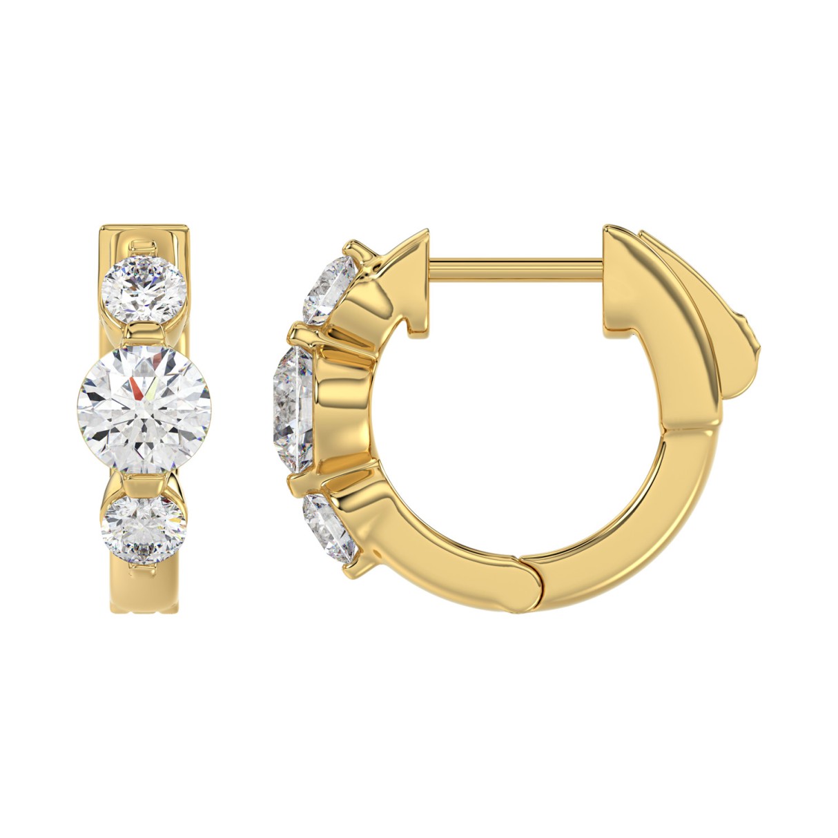 Home Earrings 14K YELLOW GOLD 1.00CT ROUND DIAMOND LADIES HOOPS EARRING